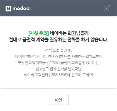 네이버 사칭주의로 금적적인 피해가 생기지 않도록 조심하십시오.