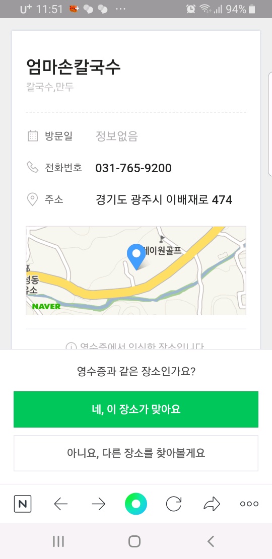 영수증이 제대로 인식이 안될 경우 장소가 다르게 나옵니다. 이럴때는 직접 주소나 전화번호, 상호로 검색하여 등록할 수 있습니다. 이렇게 해서 검색이 될 경우에는 포인트 지급이 1~3일정도 검토를 한 후 지급을 해줍니다. 검색이 안되는 경우에는 신규로 업체 등록을 해야 되며 신규로 등록을 하는 이용자는 최대 1,000포인트를 지급받을 수 있습니다.