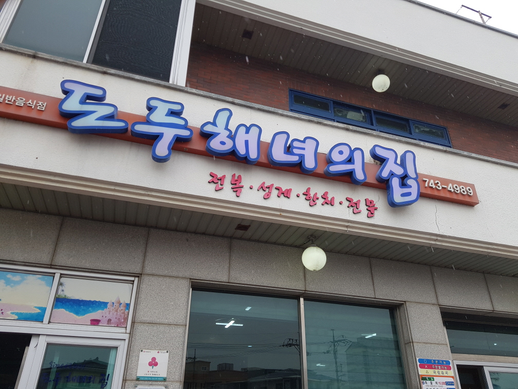 국립제주박물관에서 나와 공항근처에서 조식을 해결하고자 전복죽과 한치덮밥을 잘 한다는 '도두해녀의집'으로 갔습니다. 박물관에서 3km정도 떨어져 15분정도 소요되고 주차는 가게앞에 한줄로 주차를 하면 됩니다. 회덮밥 메뉴가 있지만 제주도에 왔으니 한치덮밥을 추천합니다. 한치덮밥과 회덮밥은 비볐을 경우 맛이 비슷합니다. 아이들이 있을 경우 고소한 전복죽을 추천합니다. 주문하고 5분정도면 음식이 나옵니다. 개인적인 입맛으로 맛집이다라기 보다는 착한가격이고 깨끗하다는 생각이 드는 음식점이였습니다.