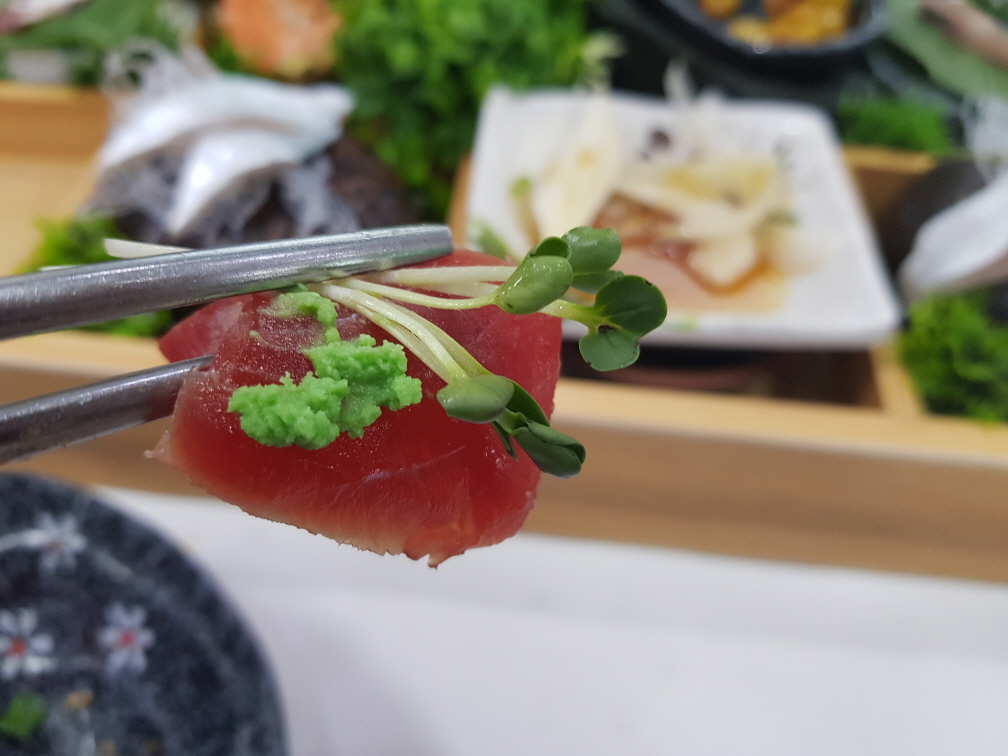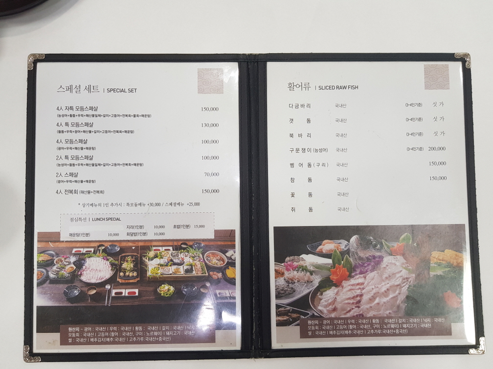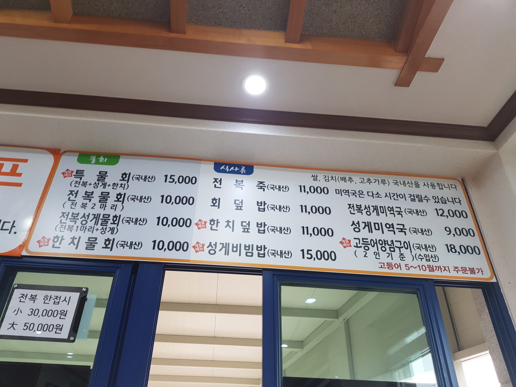 3인가족이 가서 2인분을 주문해도 됩니다. 우리는 '특2인모듬스페셜'을 주문했습니다. 전체적인 메뉴를 설명하자면 맛이 없던 메뉴는 콘치즈, 미역국, 비빔국수, 은행, 홍합같은 미리 준비해놓은 음식입니다. 그외에 찹살떡, 전복, 갈치회, 고등어회, 낙지탕탕이, 회, 볶음밥, 해삼, 매운탕, 팥빙수는 괜찮았습니다. 초밥은 무한리필인데 다른 음식들 먹다보면 추가로 주문할 수 없을 정도입니다. 수요일에 정기휴무로 알고 애월에 숙박을 안하고 이곳까지 왔는데 "연중무휴"라는 소식에 잠시 기운이 빠졌습니다. 그래도 맛집을 소개해주셨으니 맛있게 먹고갑니다.