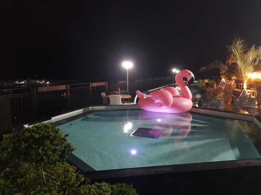 천지연폭포와 새섬, 새연교, 쌍둥이횟집이 있어 이곳으로 1일차 숙박을 했습니다. 쌍둥이 횟집이 수요일에 문을 닫는다고 하여 애월에서 멀리 이곳까지 왔는데 "연중무휴"라는 말에 힘이 빠지긴 했습니다만 후회 없는 선택이였습니다. 추천해준 엠스테이 호텔은 기계식 주차라 이곳으로 했는데 친절하고 조식도 깔끔하고 노천 온수수영장도 있어 이곳을 선택했습니다. 걸어갈 정도의 거리에 천지연폭포와 새연교가 있습니다. 횟집과 가까워 한잔하고 걸어서 다닐 수 있는 거리에 있습니다.