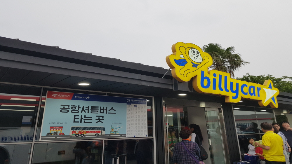 6시 20분 비행기를 타고 7시 30분에 도착하여 미리 예약해둔 '빌리카'를 이용하기 위해 렌트카 업체로 이동을 합니다. 렌트카 업체로 이동하기 위해서는 제주공항 GATE5로 나오면 렌트카 셔틀버스를 가르키는 이정표를 따라 이동하여 미리 알려준 픽업장소에서 버스를 타고 렌트카로 이동 후 예약자 확인 후 차를 렌트하면 됩니다. 운전면허증이 꼭 필요합니다.