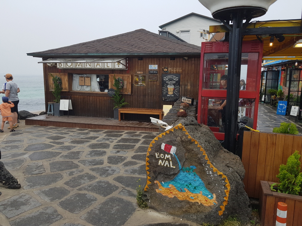 유연석, 강소라 주연으로 나온 제주도를 배경으로 한 멜로드라마의 촬영지이다. 주차장에 주차를 하는데 10분이상 걸리고 내부에도 앉을 자리가 없어 대기를 해야될 정도로 사람들이 많다. 오래 기다려서인지 커피맛이 좋다거나 뷰가 아주 멋지다라는 느낌은 덜 받는다. 이 카페를 온다라기 보다는 이곳에 카페가 많다보니 카페 선택을 못했을때 와서 카페를 선택해도 될 정도로 카페가 많다.