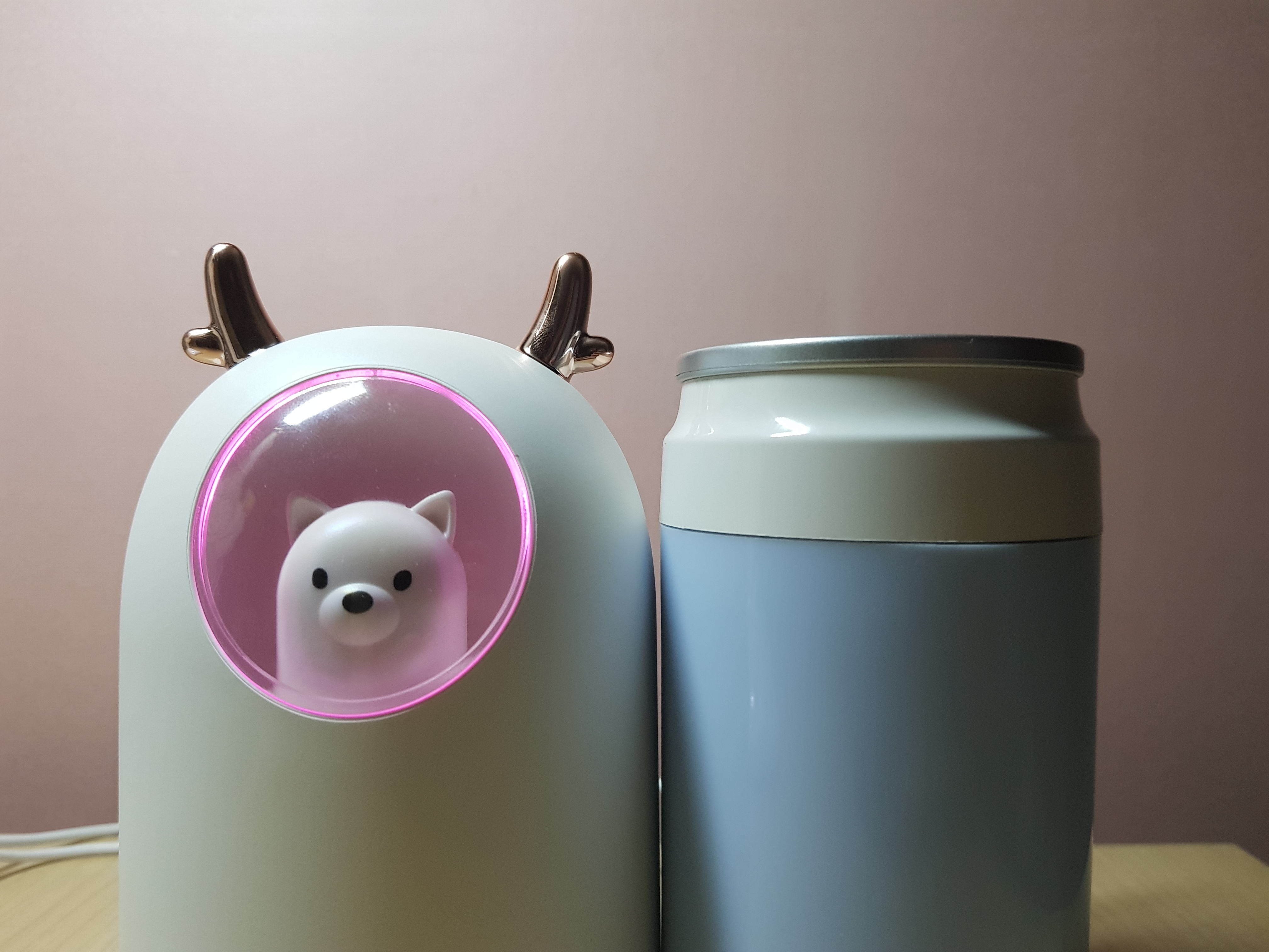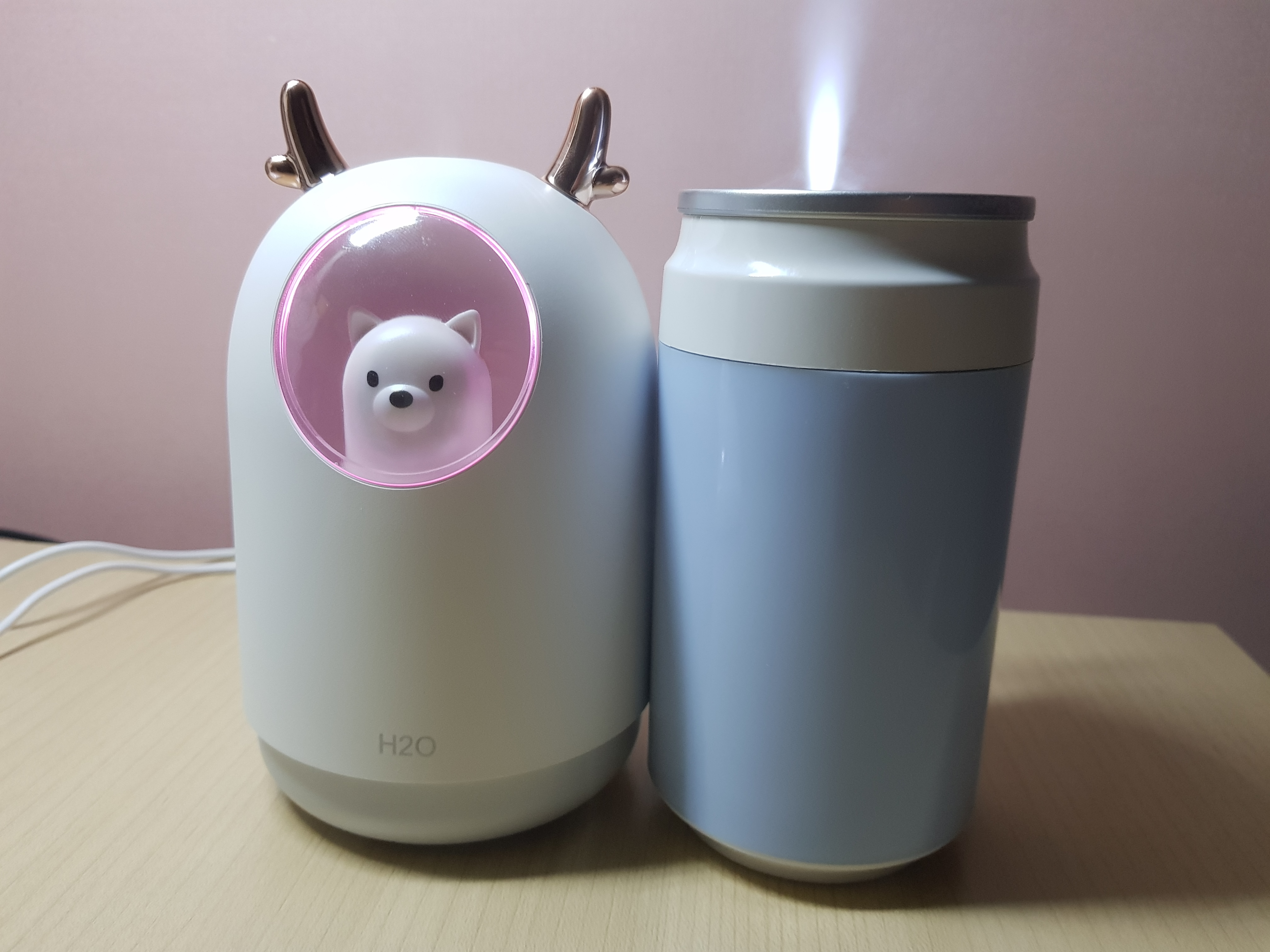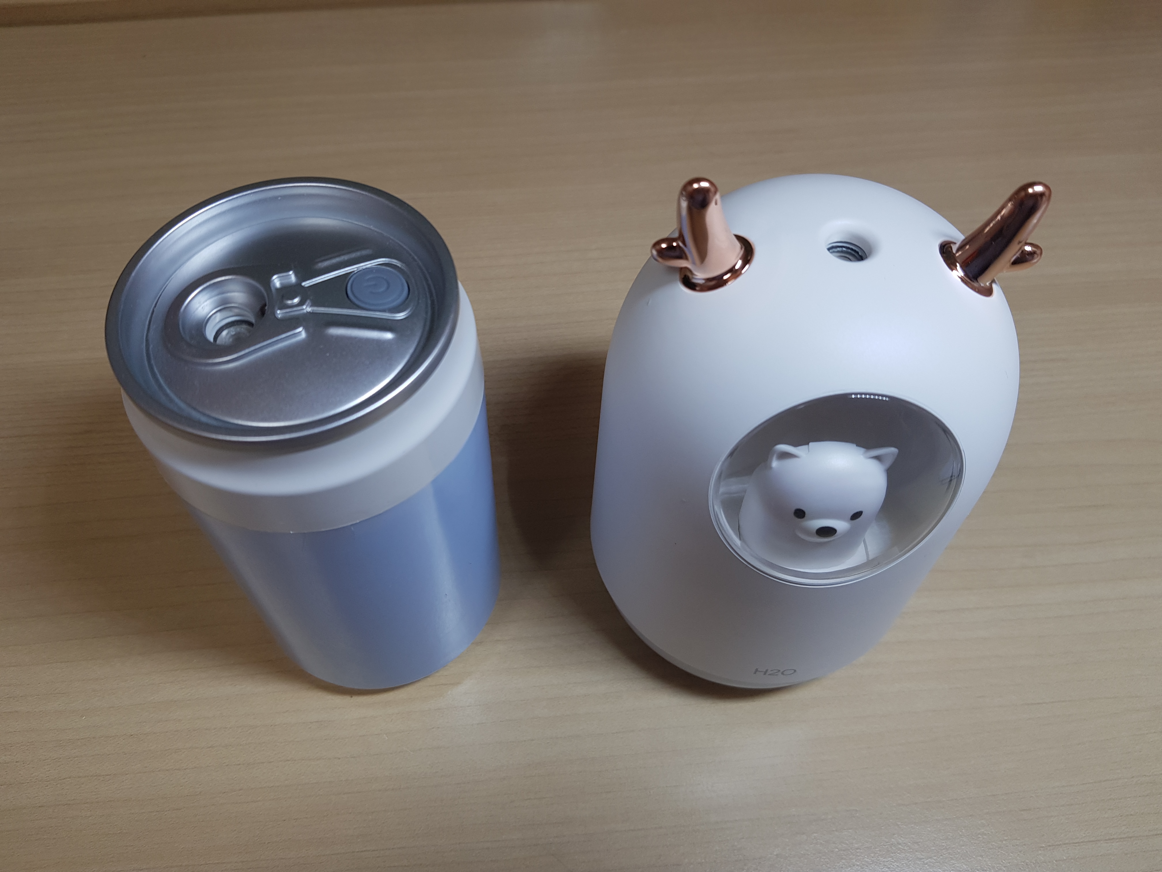 외관은 댕댕이 미니 가습기가 예쁜데 수조구조가 캔모형으로 된 미니가습기가 고무패킹이 있어 더 안전할 것 같습니다.