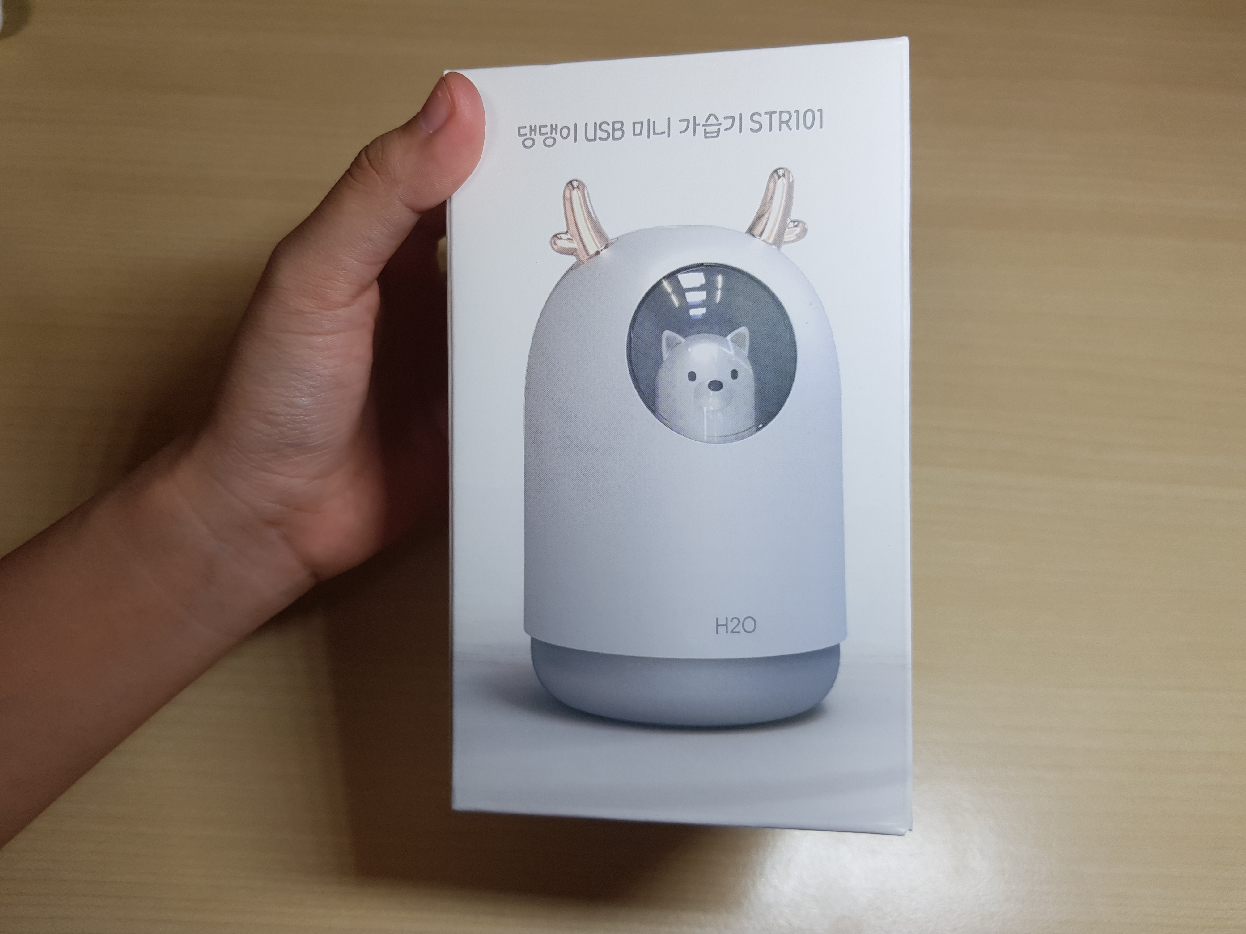 이번에 선물받은 모델은 '댕댕이 USB 미니 가습기 STR101' 아이 손으로 쥘 수 있는 사이즈입니다. 우유 500ml정도 크기로 부피가 크지 않아 좋습니다. 알수없는 캐릭터가 위치해 있고 색이 변하는 무드등으로 사용할 수 있습니다.