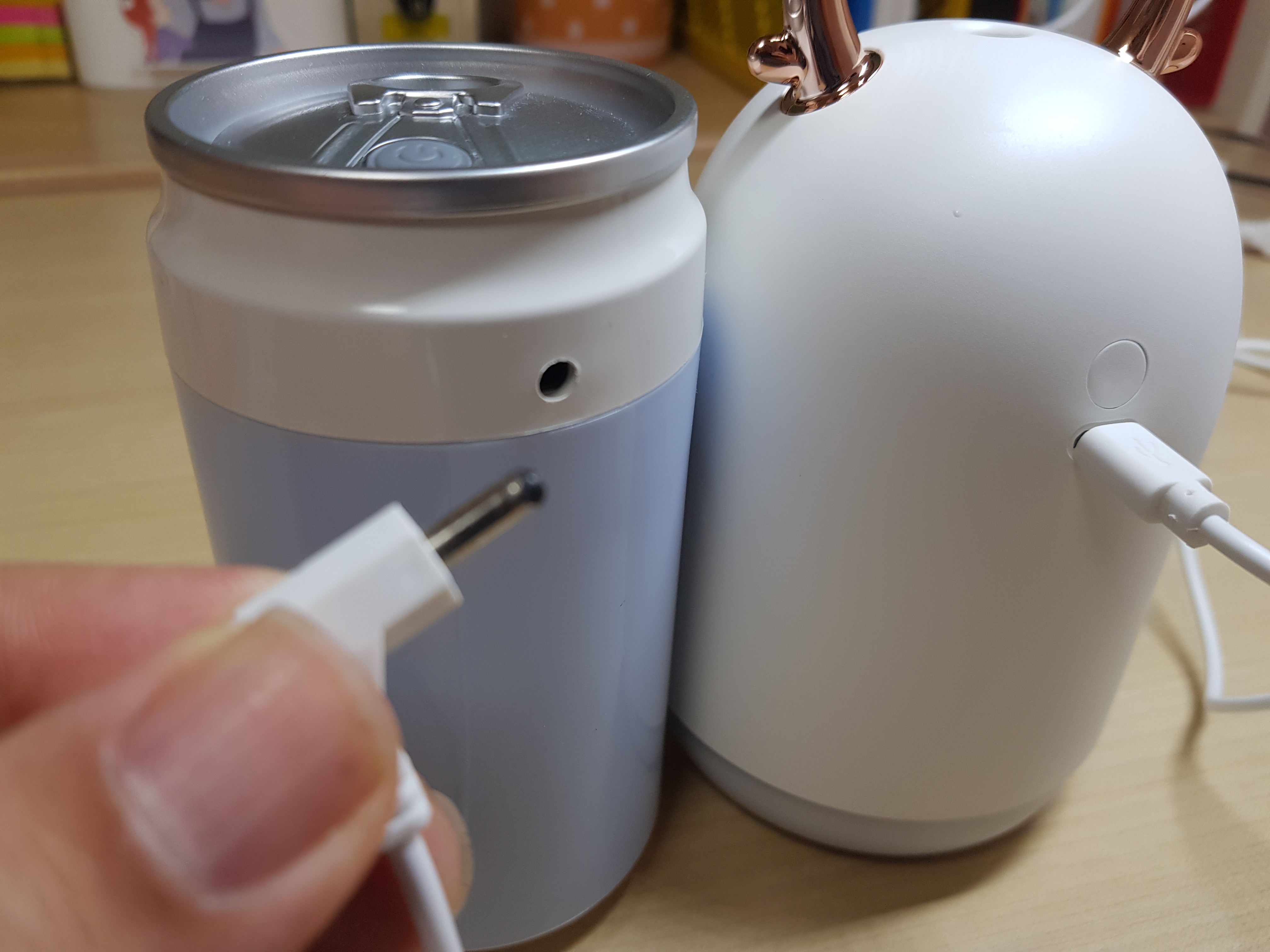 사무용 미니가습기는 USB형태지만 가습기에 들어가는 전원은 모델마다 다른 것을 알 수 있었습니다. 스미다 캔 미니가습기는 전용 전용케이블이 없으면 사용을 못하는 단점이 있습니다. 댕댕이 미니가습기는 스마트 폰 5핀타입으로 전원케이블을 쉽게 구할 수 있는 장점이 있습니다. 처음부터 5핀이나 C타입으로 만들었으면 좋았을 것 같은데 스미다 가습기가 역류하지 않아 좋았지만 전원에서 아쉬움이 있습니다.