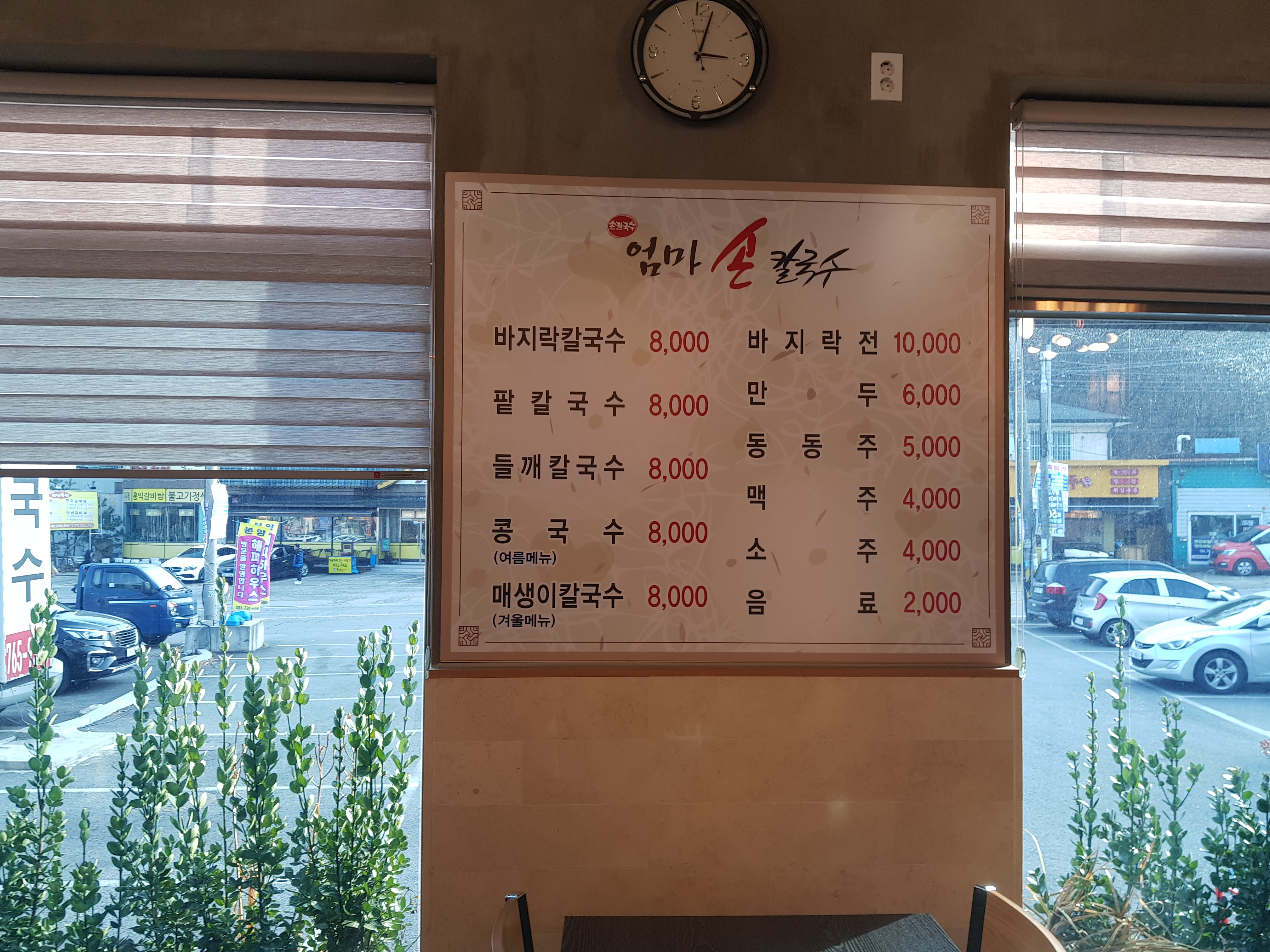 바지락칼국수 8,000원