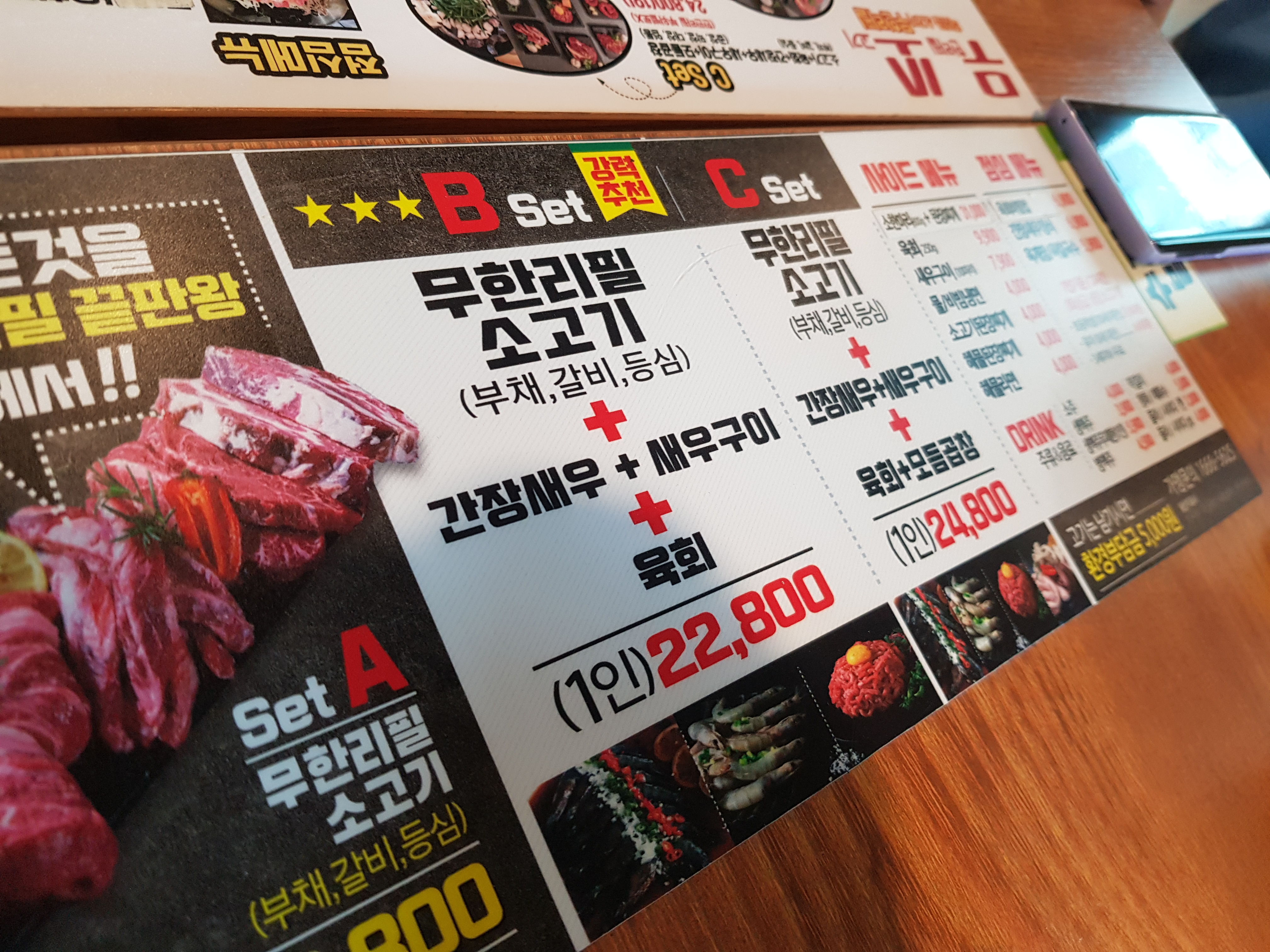 무한리필소고기+간장새우+새우구이+육회+모듬곱창