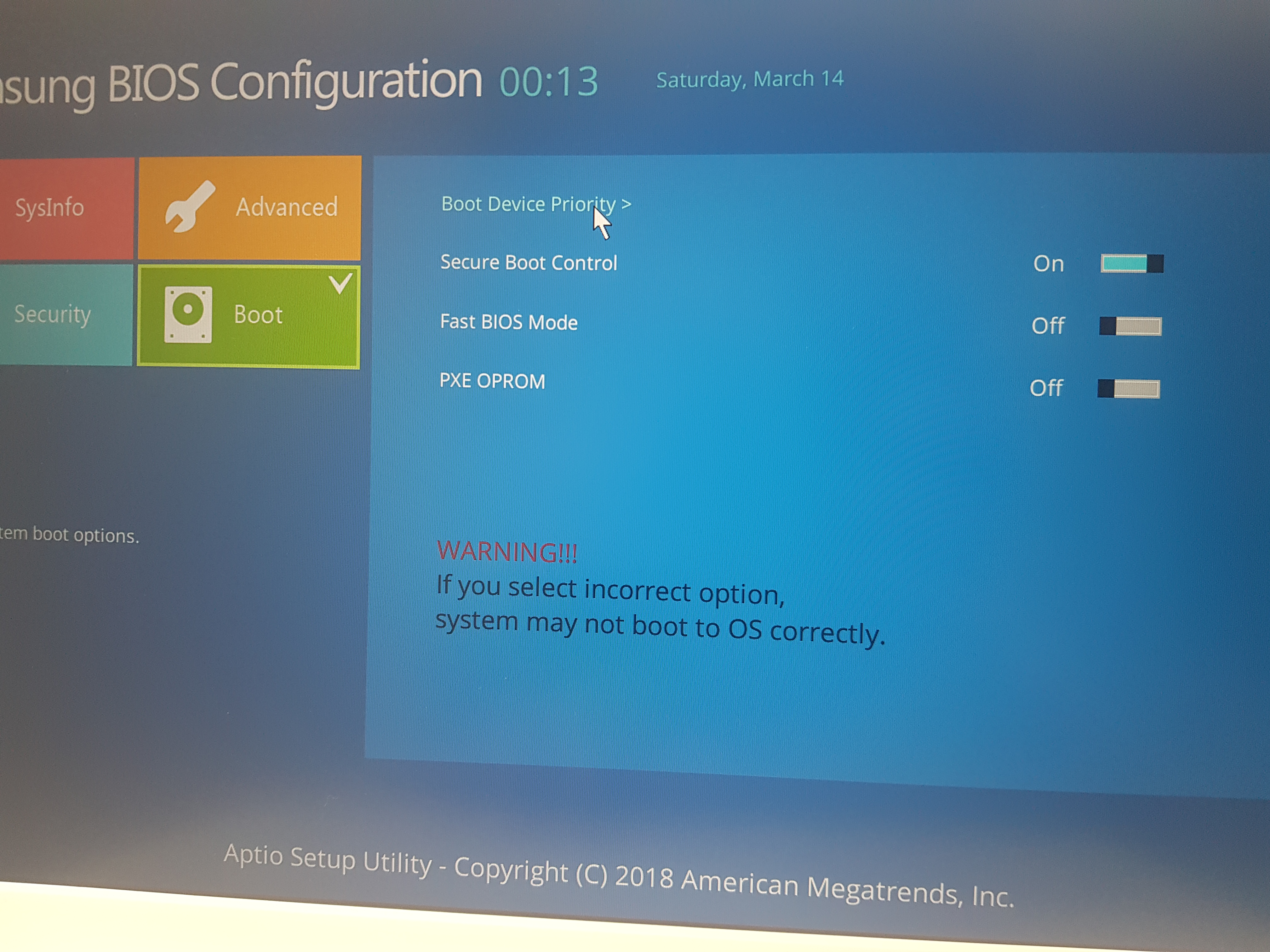 CMOS 들어가야 되는데 이 노트북은 부팅하고 [F2]를 눌러BOOT옵션에서 부팅순서를 정해야 합니다. 그런데 기존에 가지고 있던 USB가 안되어 당황했습니다. 상품페이지에 나와 있는 USB부팅 포스팅을 그대로 따라했습니다. 이때 윈도우USB부팅을 만드는게 아니라 윈도우를 USB에 설치하는 것이라 시간이 오래 걸립니다. 윈도우USB가 만들어지면 이것을 가지고 윈도우를 설치하면 됩니다. 실수하면 저처럼 나오니 당황하지 말고 블로그를 보고 잘 따라하면 됩니다.