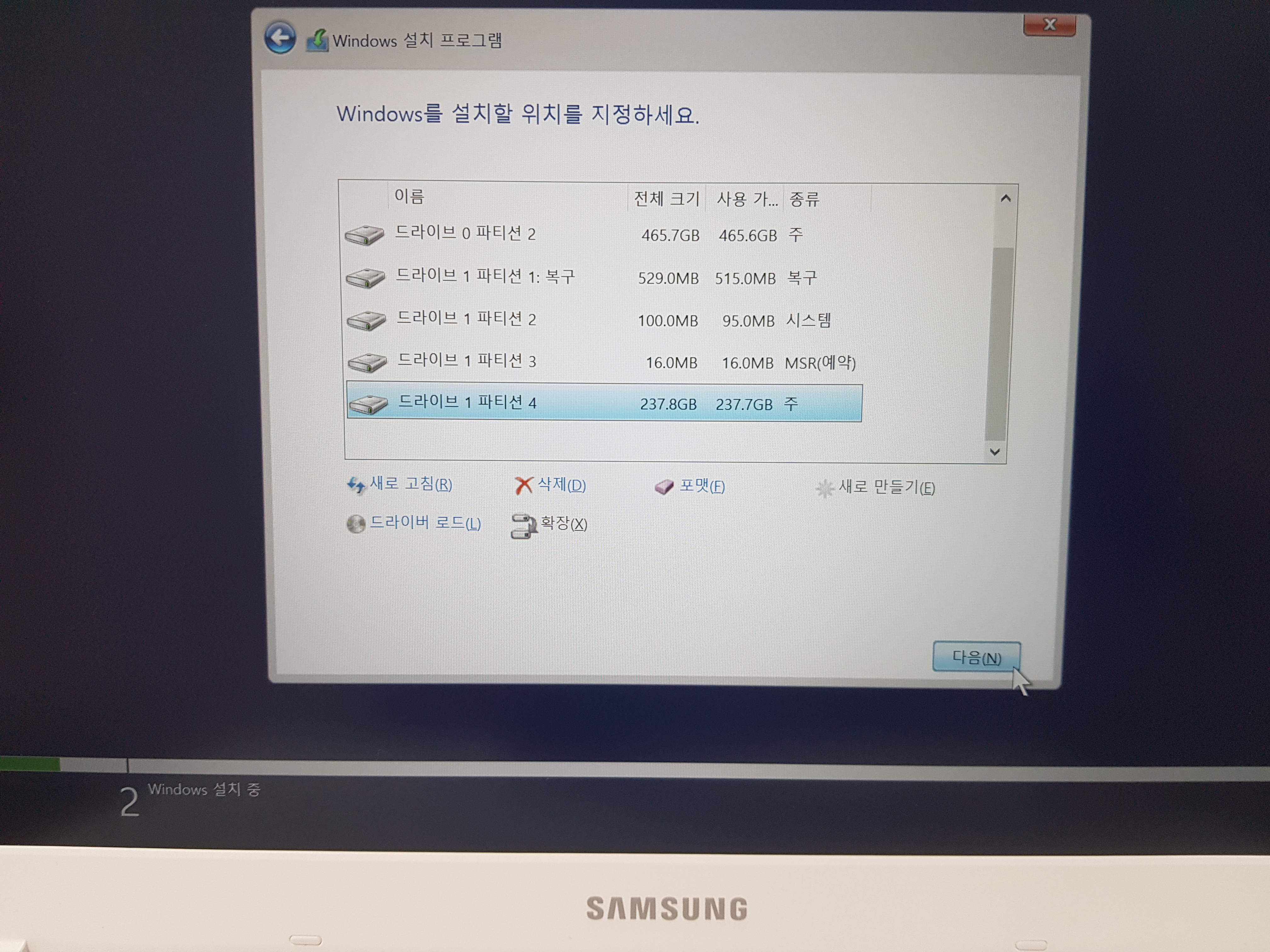 윈도우를 설치해보셨다면 이제 쉽게 설치를 하실 수 있습니다. 윈도우 설치를 진행하면 됩니다.