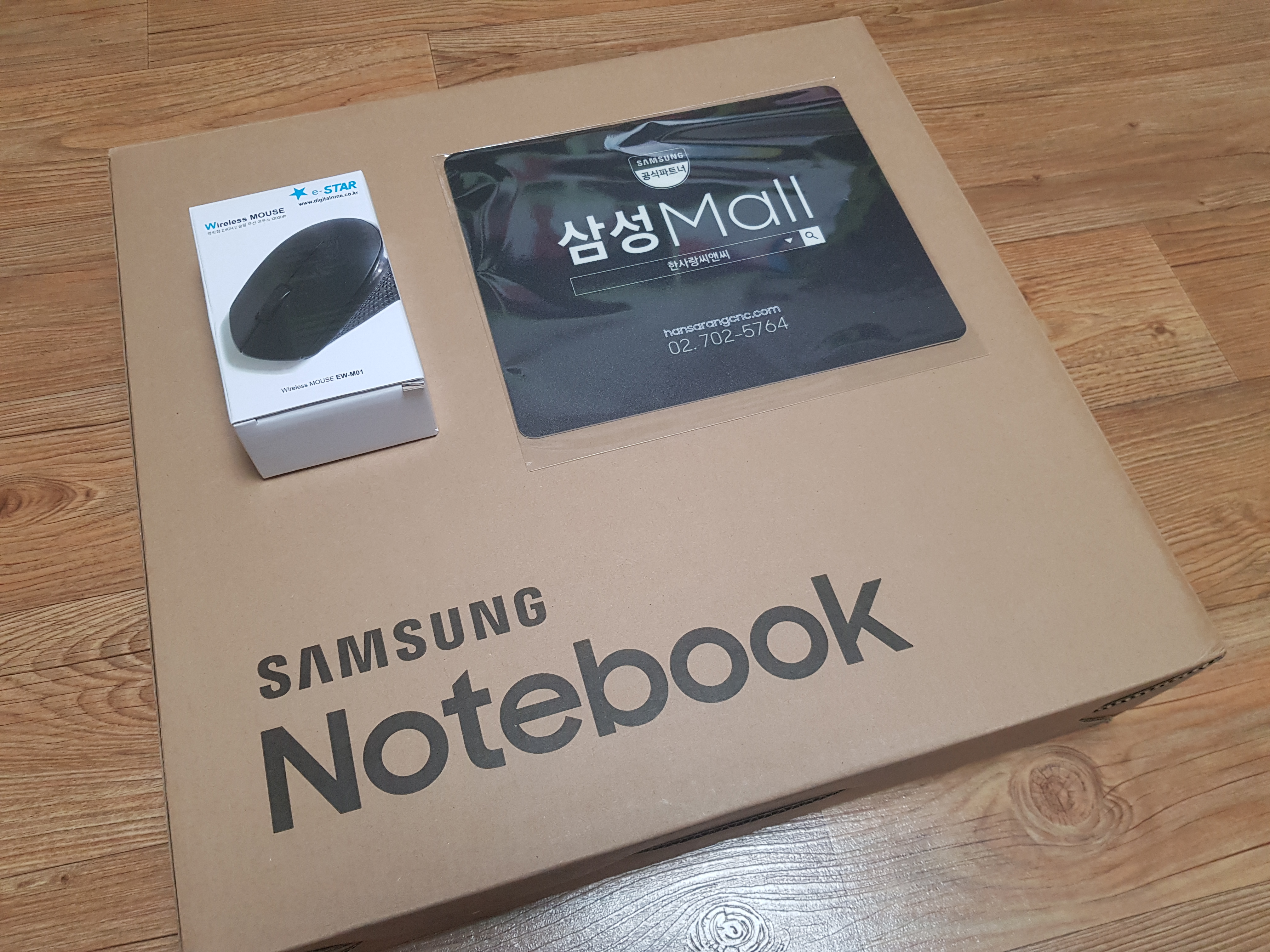 제가 산 노트북은 삼성노트북5입니다. 요즘에 나오는 노트북은 아니고 조금 되었지만 가성비가 좋은 6세대 i7 노트북입니다. 포장은 안전하게 포장되어 왔습니다. 노트북+전원케이블+마우스패드+무선마우스가 들어가 있습니다. 무선마우스와 마우스패드는 사은품으로 받았습니다.
