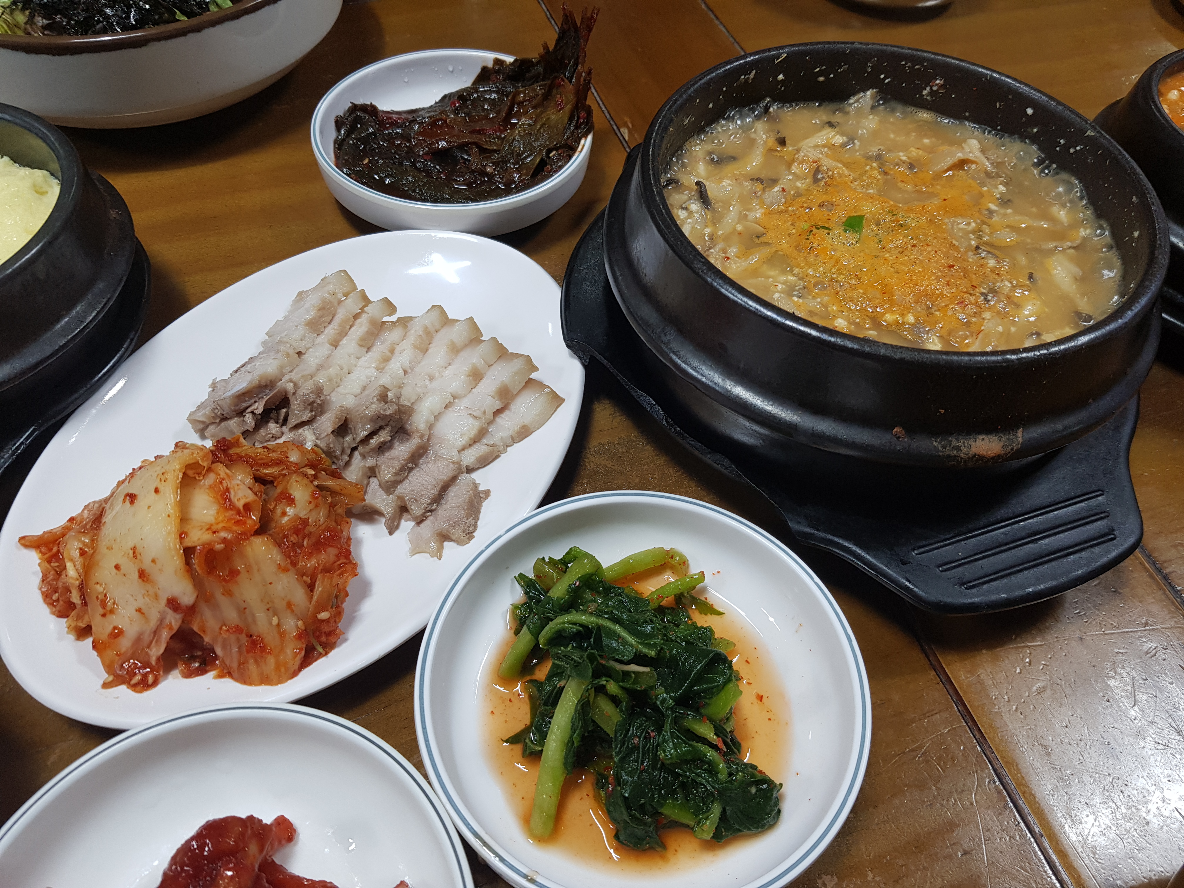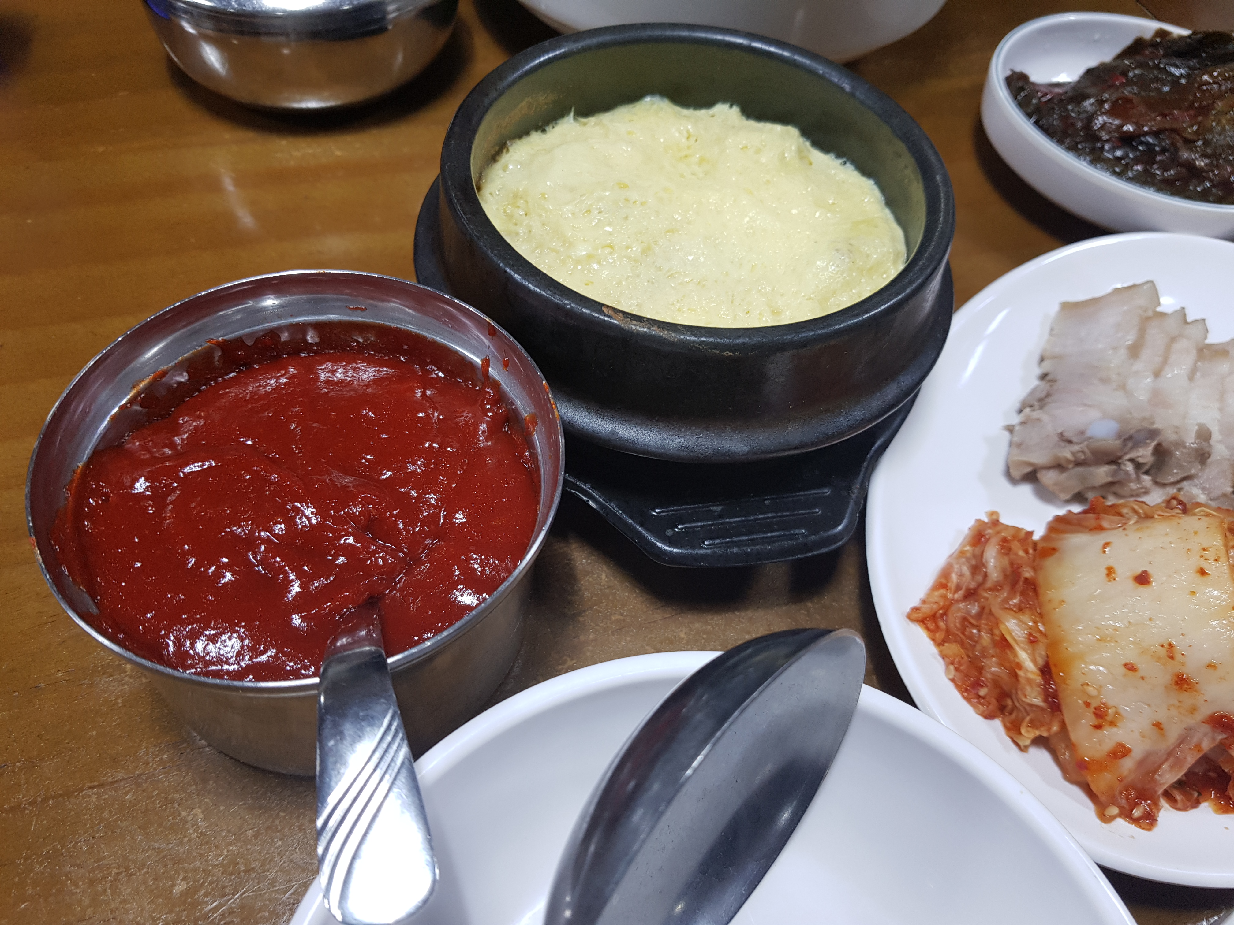 청국장의 맛은 진하지 않아 된장과 청국장을 섞은 느낌으로 부담없습니다. 청국장에 두부보다는 버섯이 더 많아 보입니다. 여기에 보쌈주고 계란찜을 넣으면 5,000원(현금)에 팔아도 될까 싶을 정도입니다.