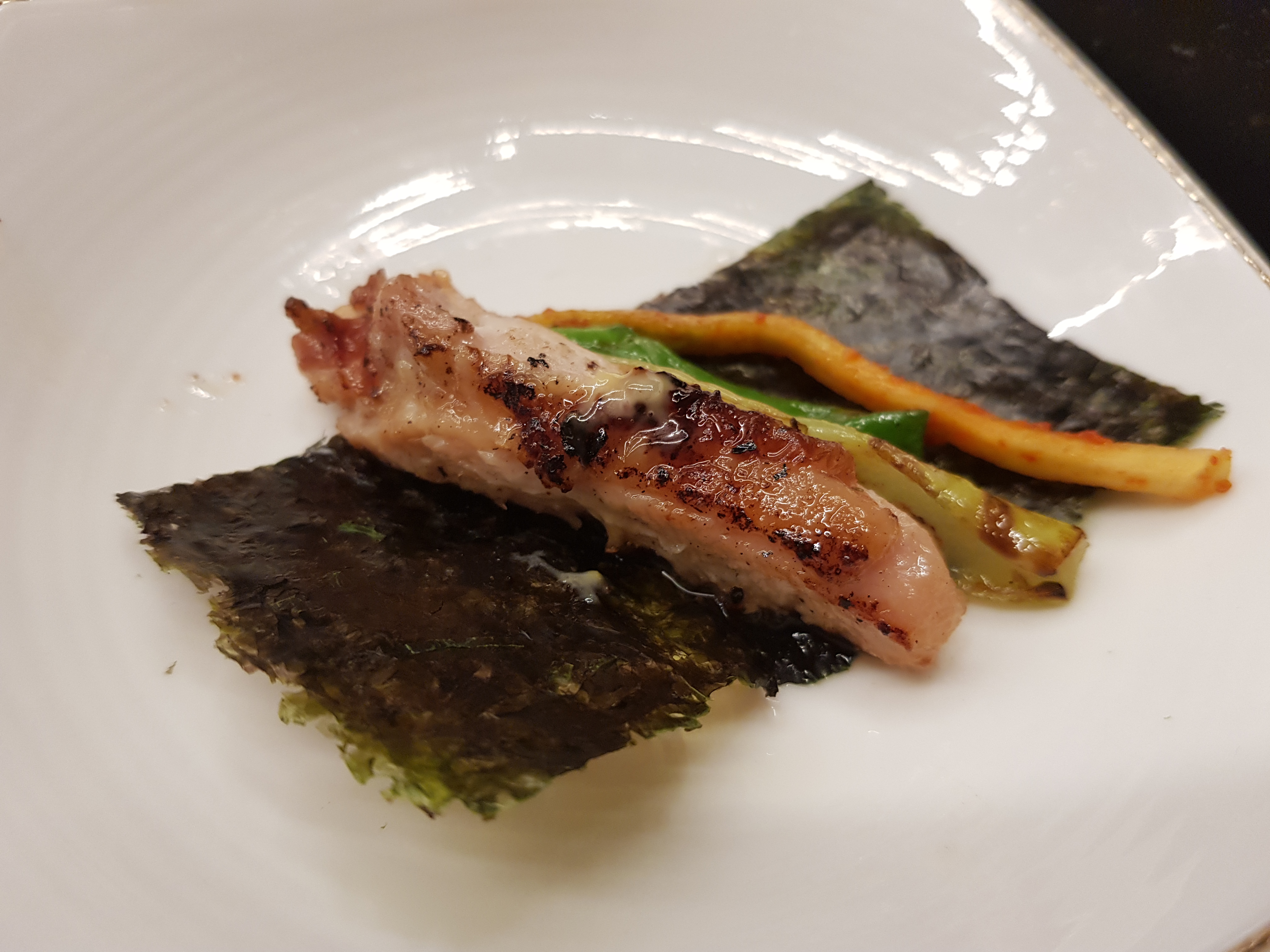 2인분이지만 양이 많지 않습니다. 이렇게 잘 익은 닭갈비를 점원이 알려준대로 김으로 싸서 또 한잔을 했습니다. 닭보다는 돼지고기 같은 느낌이랄까요? 담백하면서 깔끔한 맛입니다.