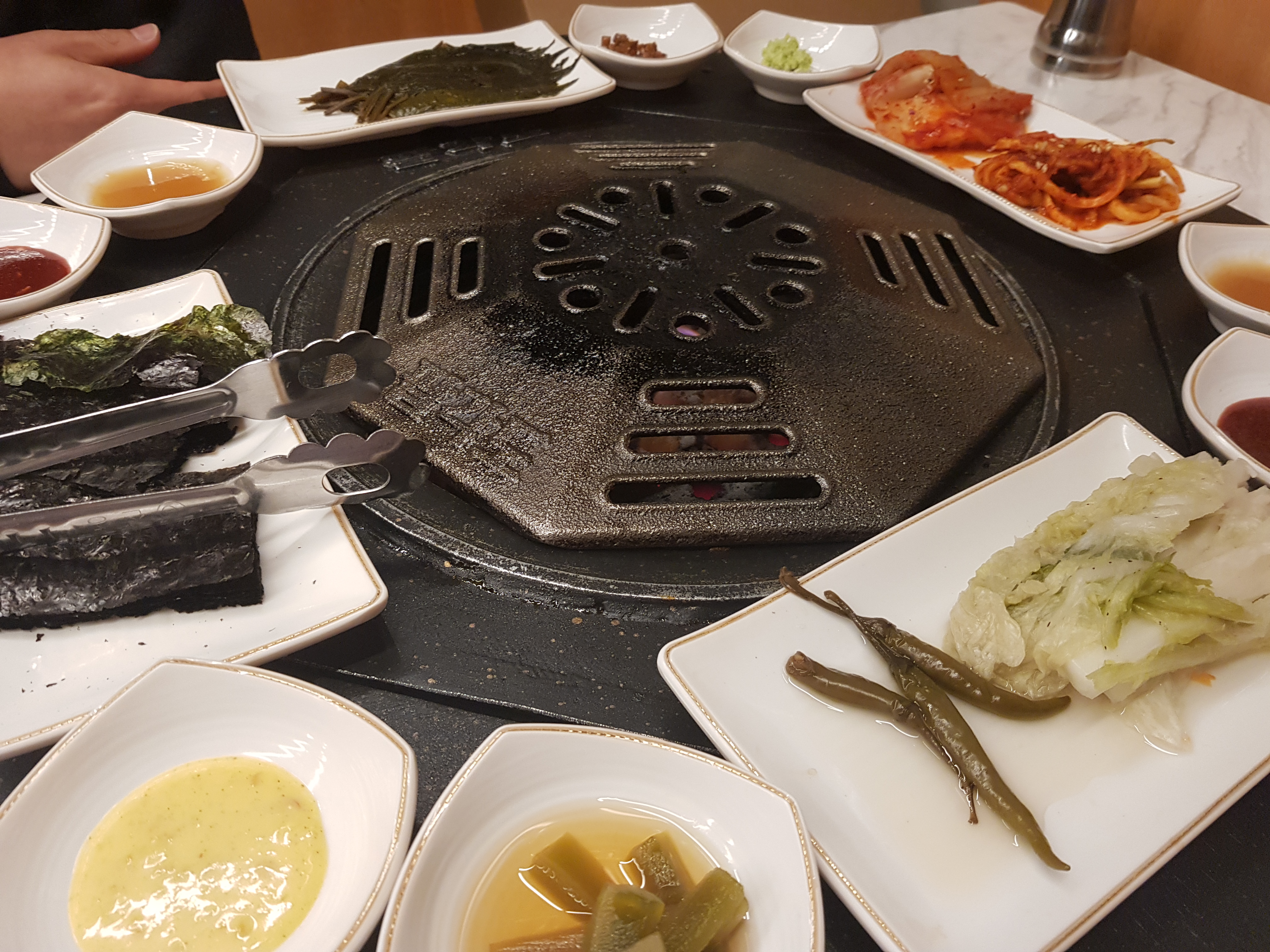 앞에 대기가 10팀 이상이였는데 절반이상이 다른 음식점으로 이동하여 예상시간보다 빠르게 자리를 잡을 수 있었습니다. 테이블은 20개가 넘는 것 같습니다. 저희는 쪽방같은 곳으로 안내를 받았고 세팅을 해주셨습니다. 첫방문인지 확인하고 첫방문은 먹는 방법을 알려줍니다.