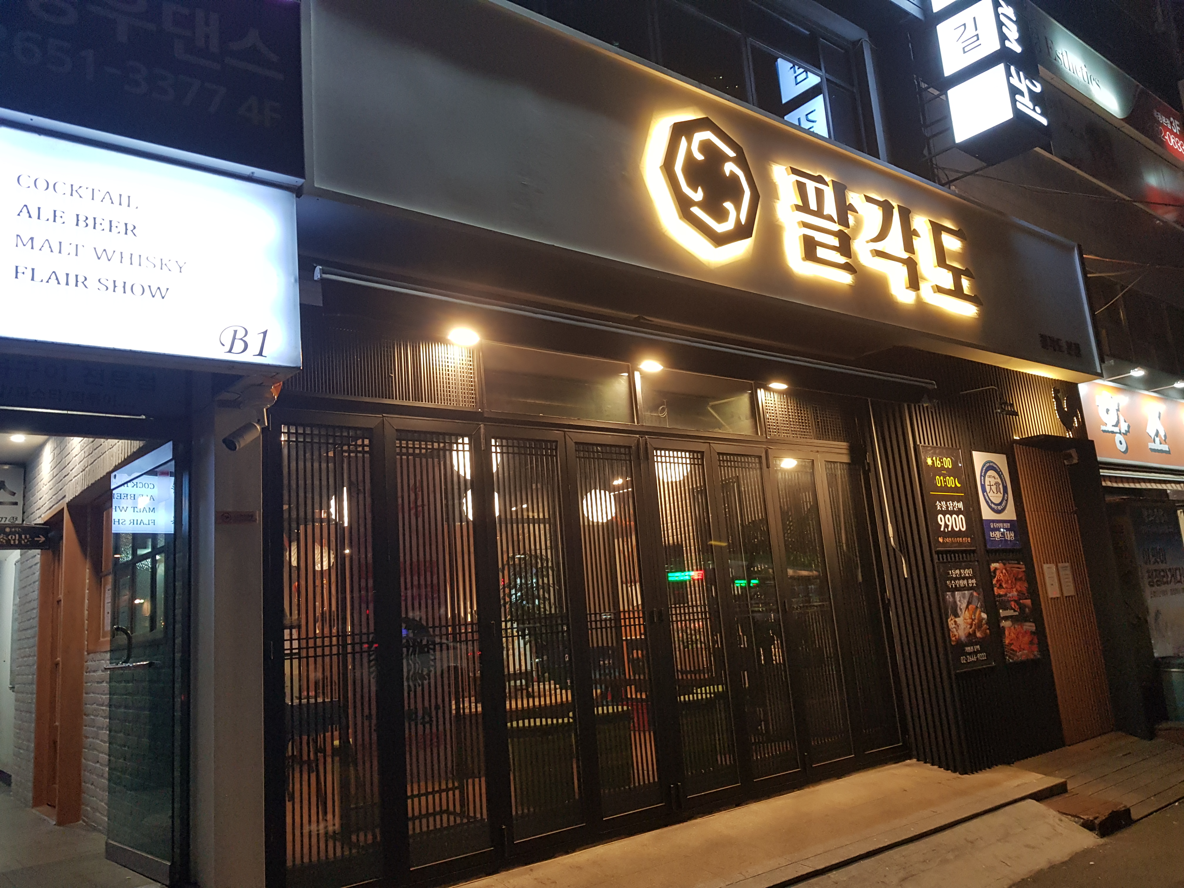 닭 부위별 숯불화로구이 전문점입니다. 숯불로 초벌구이를 해서 나오기 때문에 부드러운 육질과 풍부한 육즙이 일품입니다. 또한 그동안 몰랐던 닭 특수부위를 맛볼 수 있으며 맛깔스러운 반찬과 소스도 즐길 수 있는 맛집입니다. 팔각정을 모티브로 재해석한 팔각도는 교통이 편리한 오목교역 목동 현대백화점 맞은편에 있으며 외관이나 내부 장식이 특이한 멋집으로 데이트 및 단체회식하기 좋은 즐거운 공간입니다.