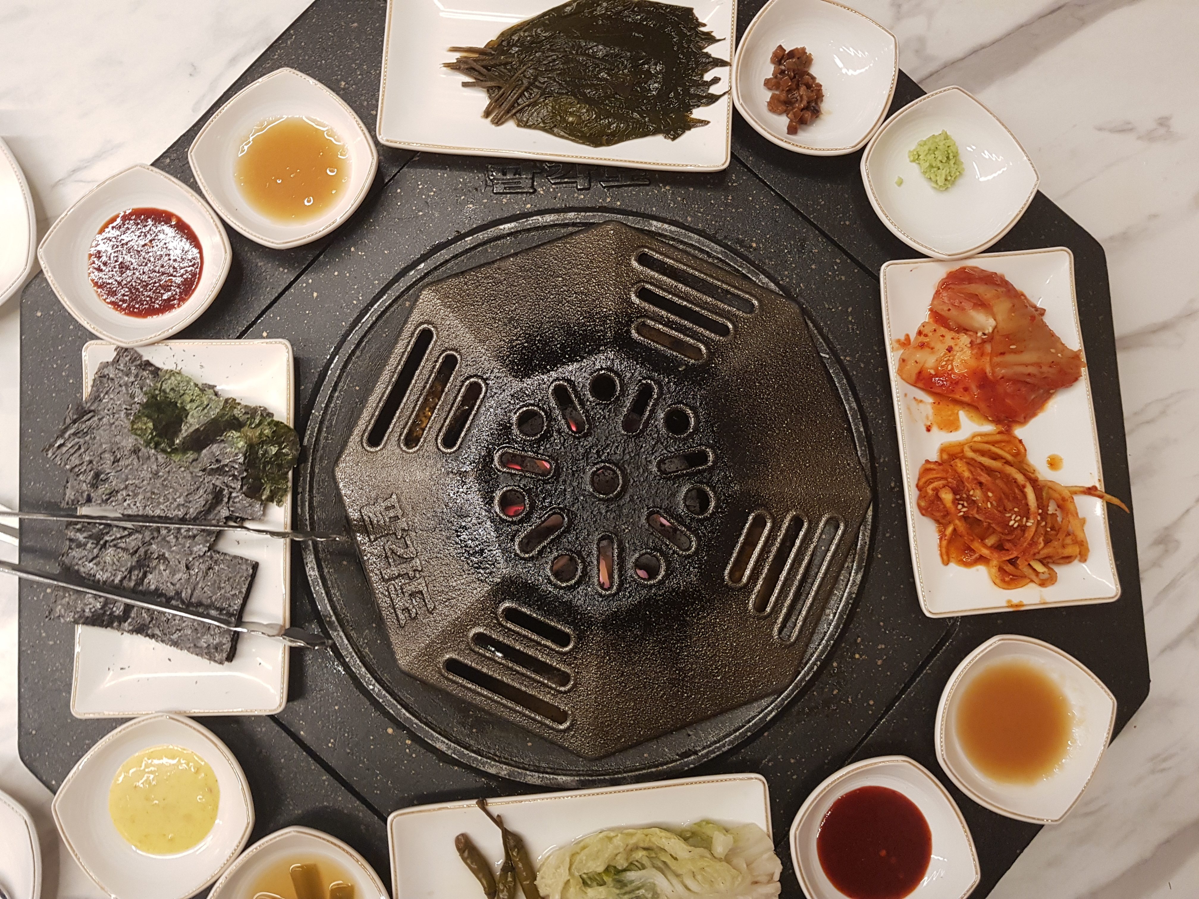 앞에 대기가 10팀 이상이였는데 절반이상이 다른 음식점으로 이동하여 예상시간보다 빠르게 자리를 잡을 수 있었습니다. 테이블은 20개가 넘는 것 같습니다. 저희는 쪽방같은 곳으로 안내를 받았고 세팅을 해주셨습니다. 첫방문인지 확인하고 첫방문은 먹는 방법을 알려줍니다.