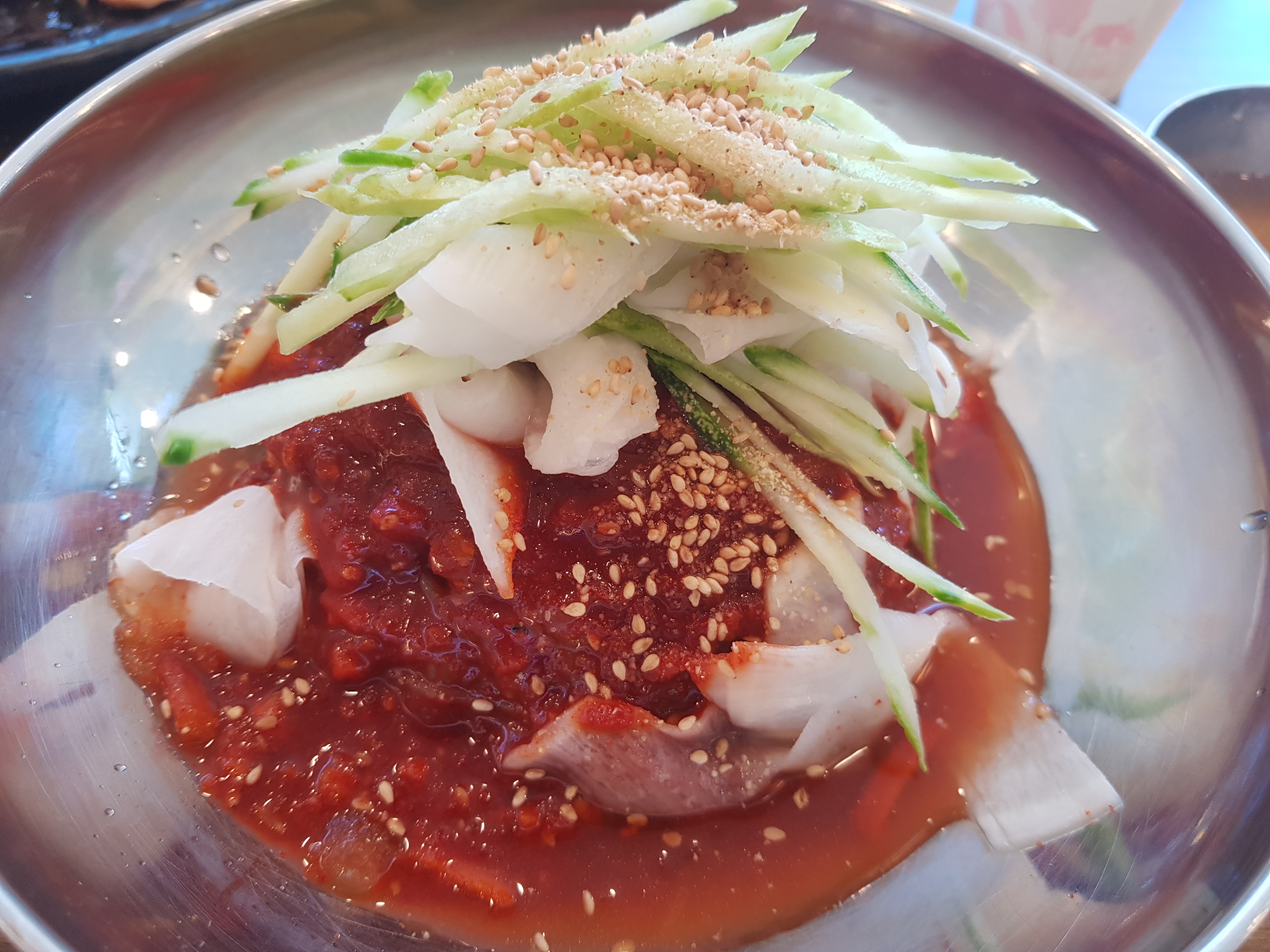 냉면 육수를 같이 주다보니 조금 넣어서 먹으니 비빔냉면인데오 시원하고 괜찮았습니다. 전에는 비빔냉면 보다는 물냉면을 좋아했는데 요즘 전문점에 가면 비빔이 더 땡기는건 늙어서 일까요?