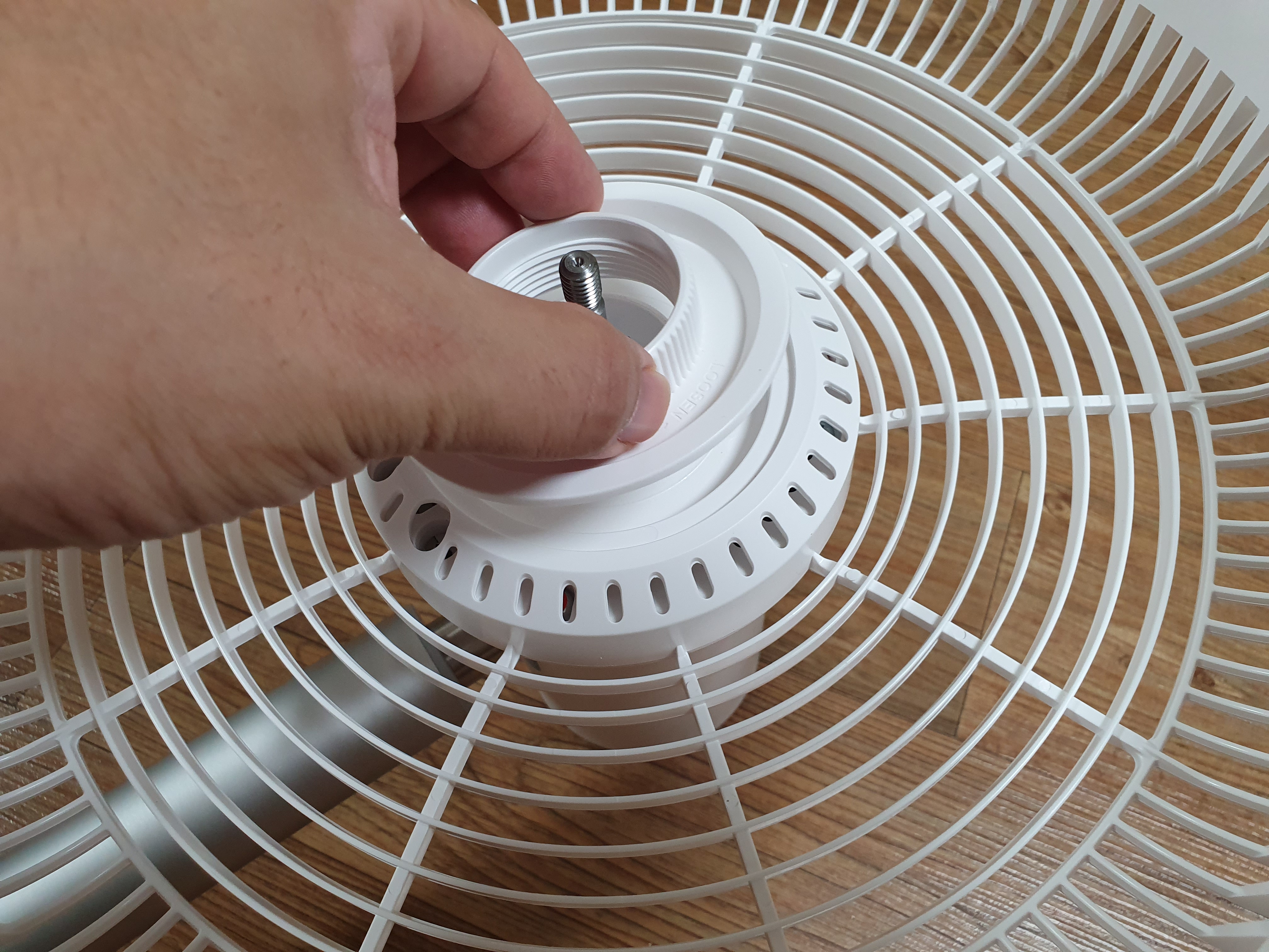 선풍기 하단을 보면 이렇게 조립나사를 넣어 주세요.