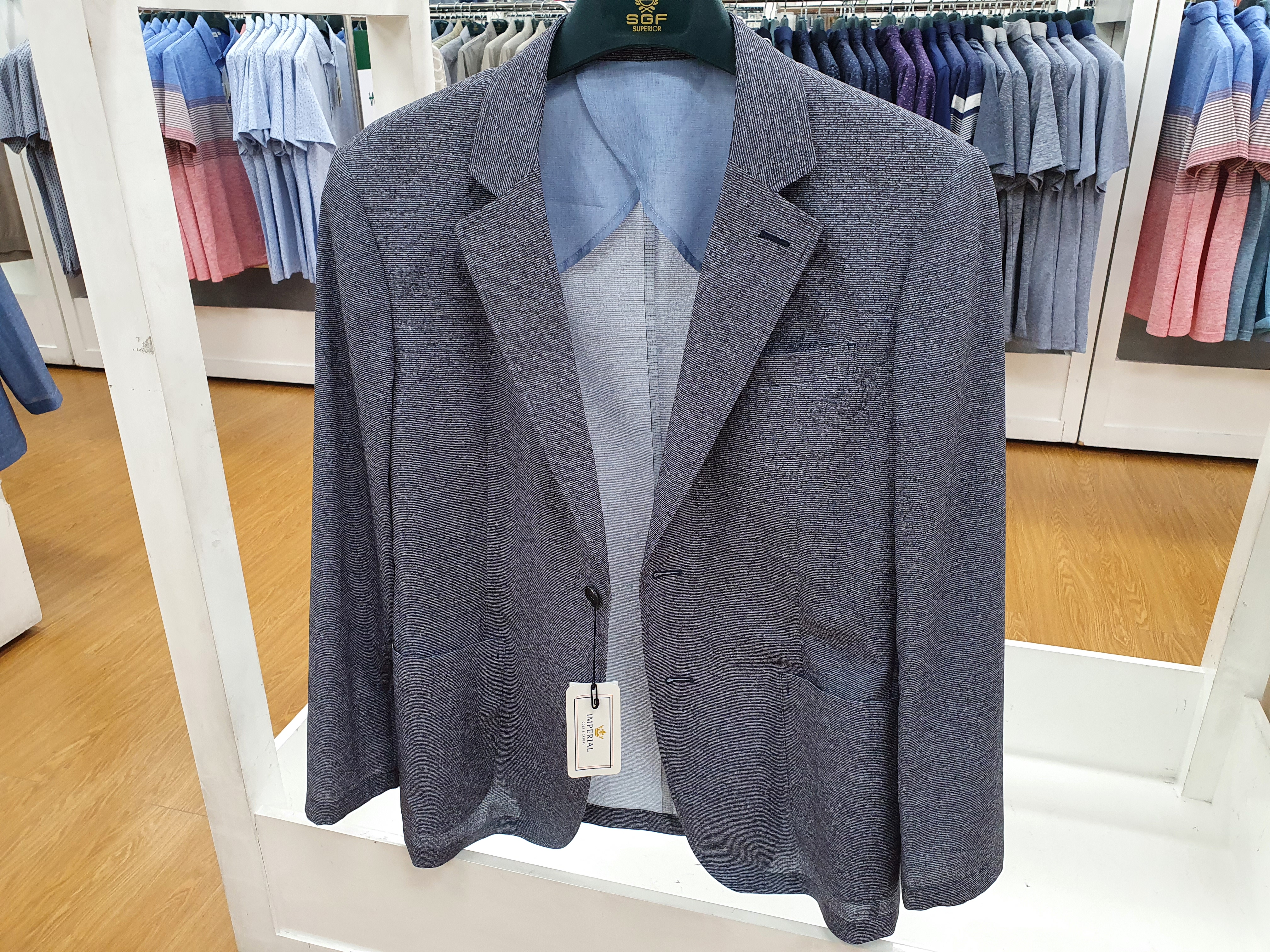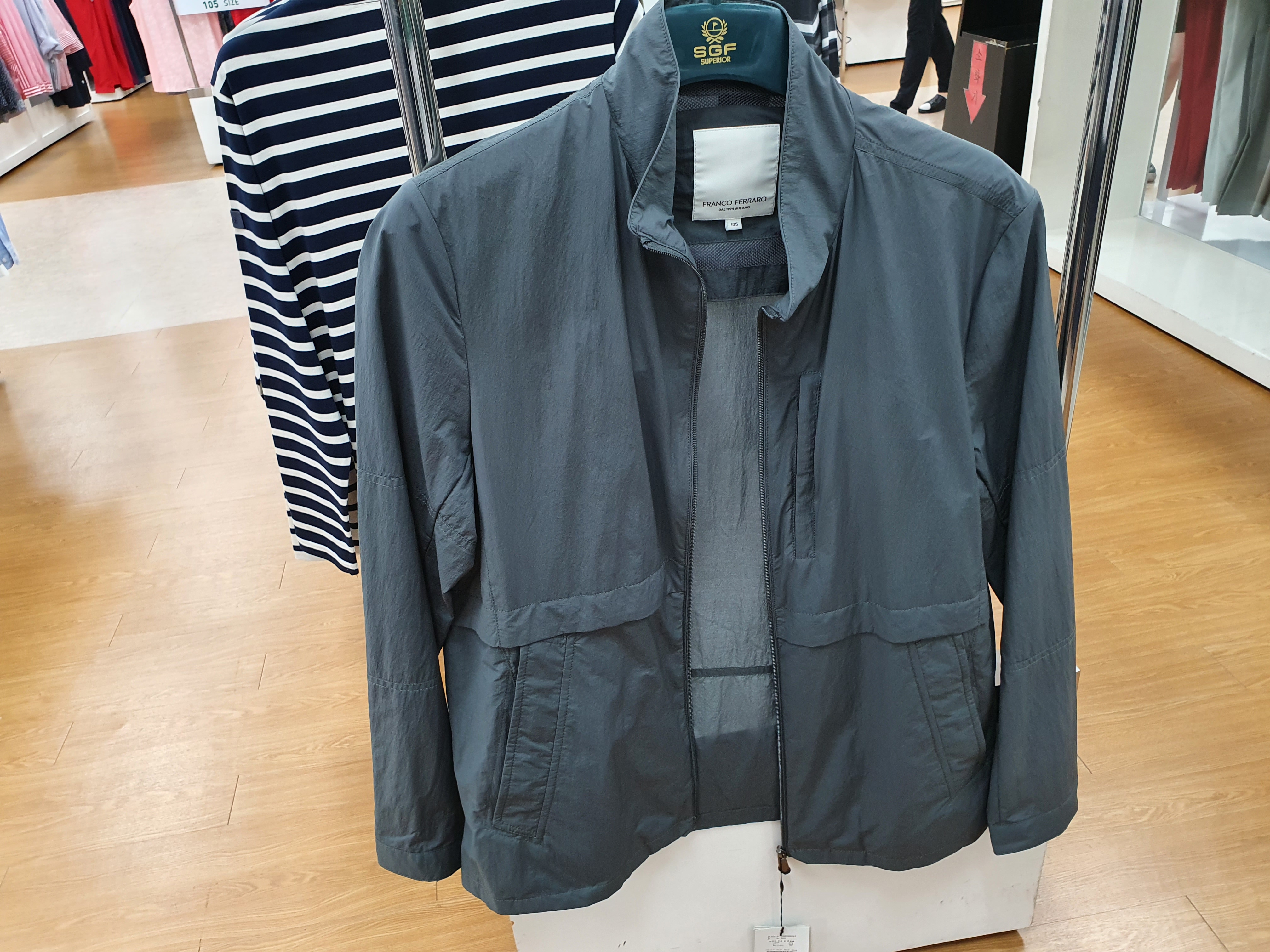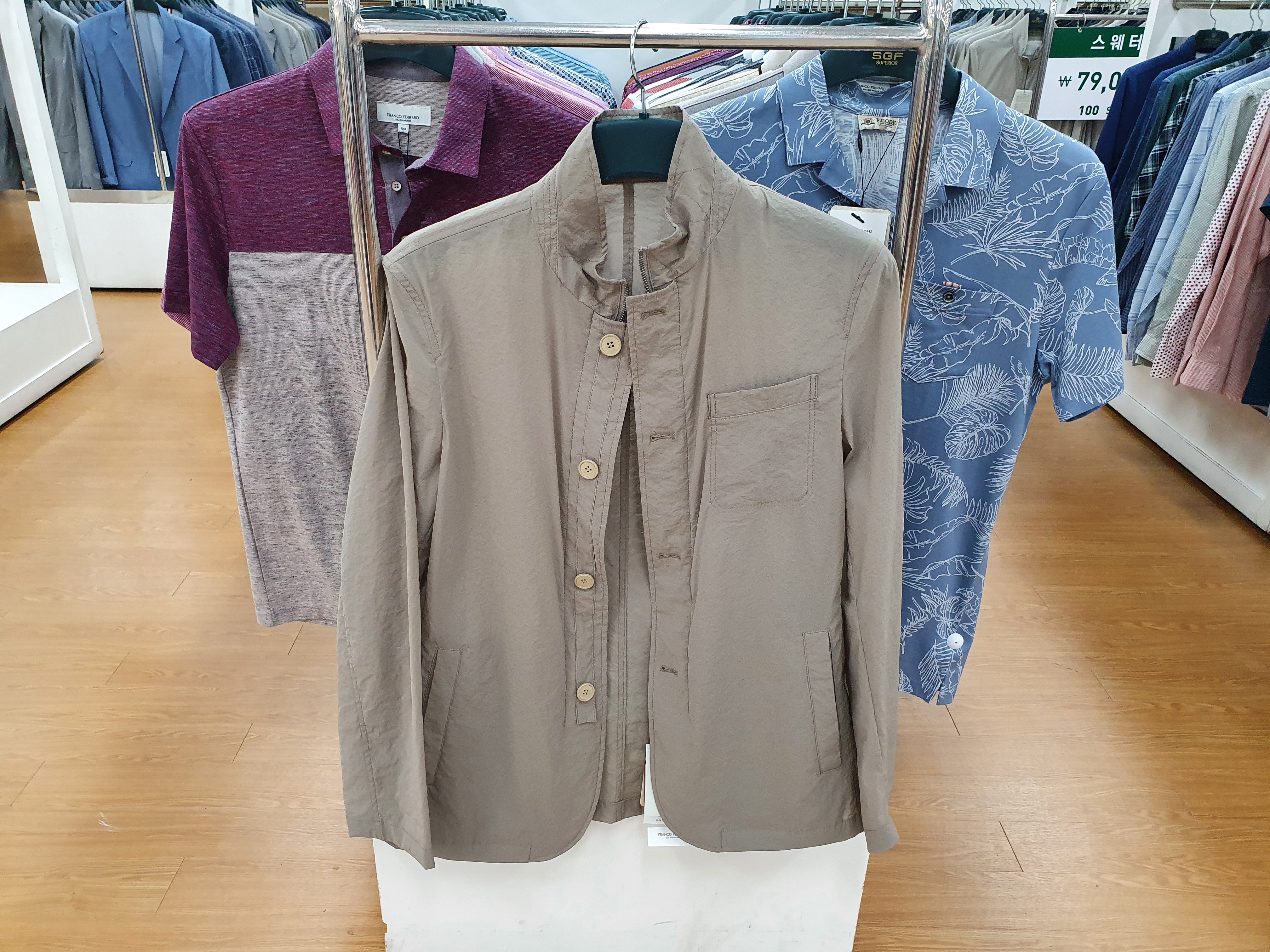 자켓, 점퍼들이 있는데 자켓도 50%행사가 들어가는 모델들이 있습니다. 소재는 매우 시원한 마소재로 보입니다. 정장자켓스타일은 10만원 미만이고 할인하면 더 떨어집니다. 여름이지만 가을자켓들도 어느정도 있었습니다.