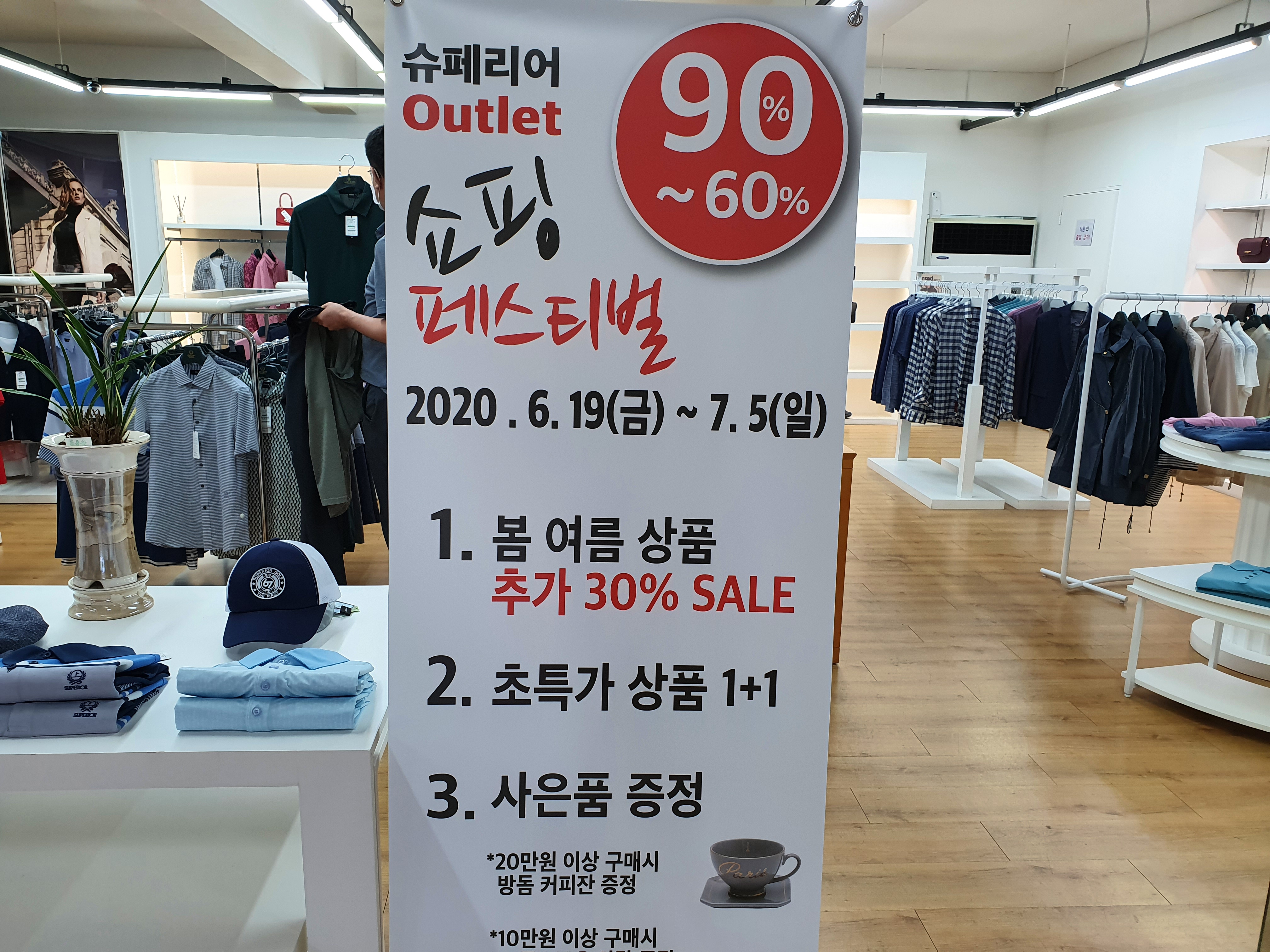이 곳은 특이하게 슈페리어에서 운영하는 아울렛매장입니다. 말이 아울렛이지 백화점부터 아울렛, 지방매장에 있는 슈페리어 계열사 옷을 한번에 모아놓은 곳이라고 볼 수 있습니다. (일부제외) 이 곳은 기본 20%정도 세일이 들어가는데 2~3달에 한번정도 30%세일을 합니다. 입번에는 50%세일을 하고 생일 쿠폰이 있어 방문해봤습니다.
