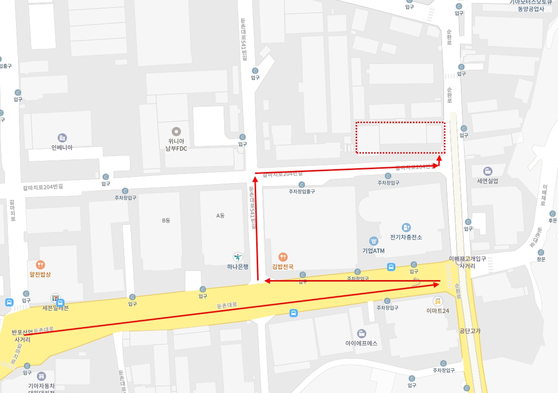 처음에 가면 어디로 어떻게 들어가야 되는지 모르기 때문에 헤맬 수 있는데 초행길이시면 이대로 들어가시는 편합니다.