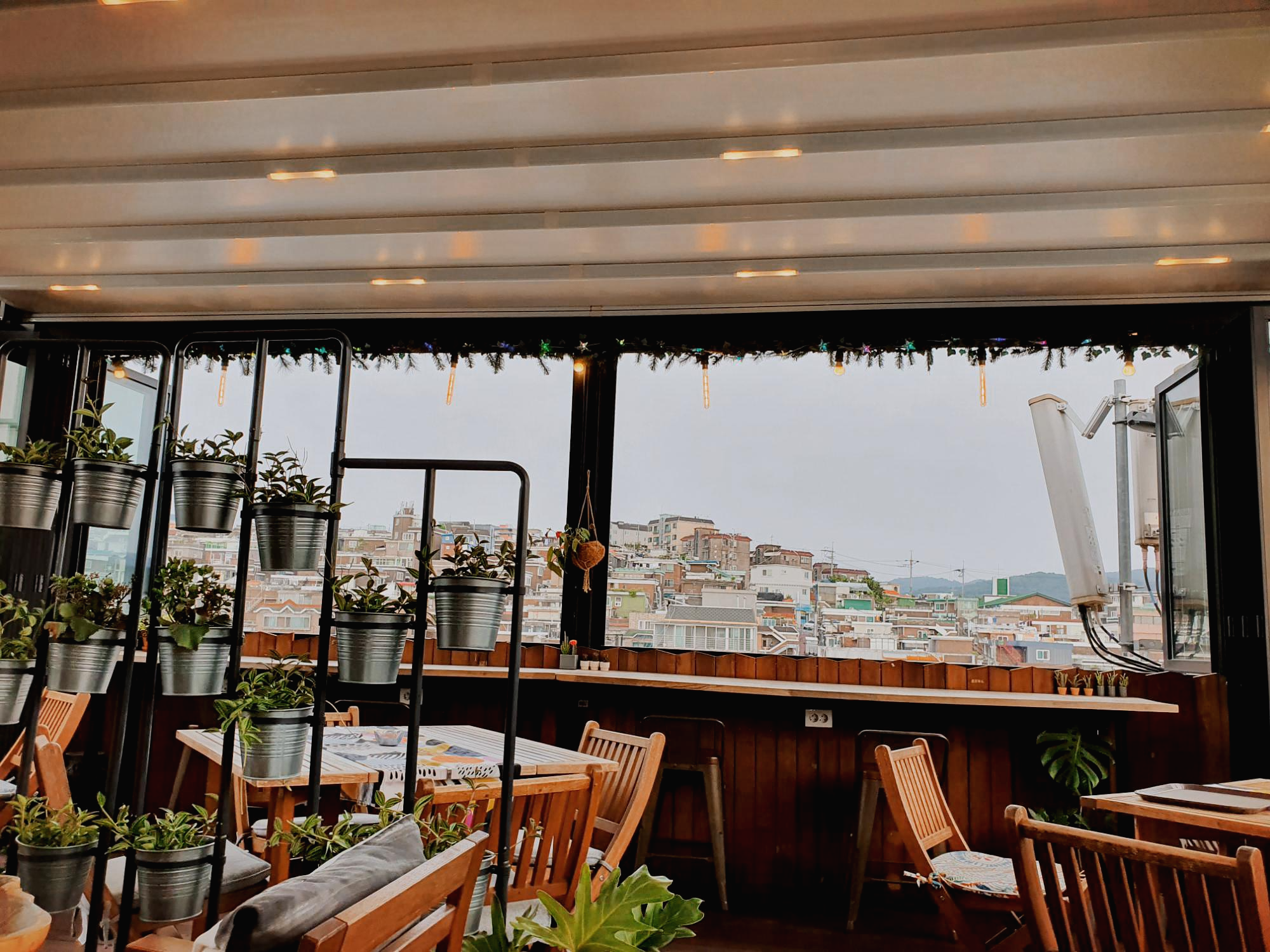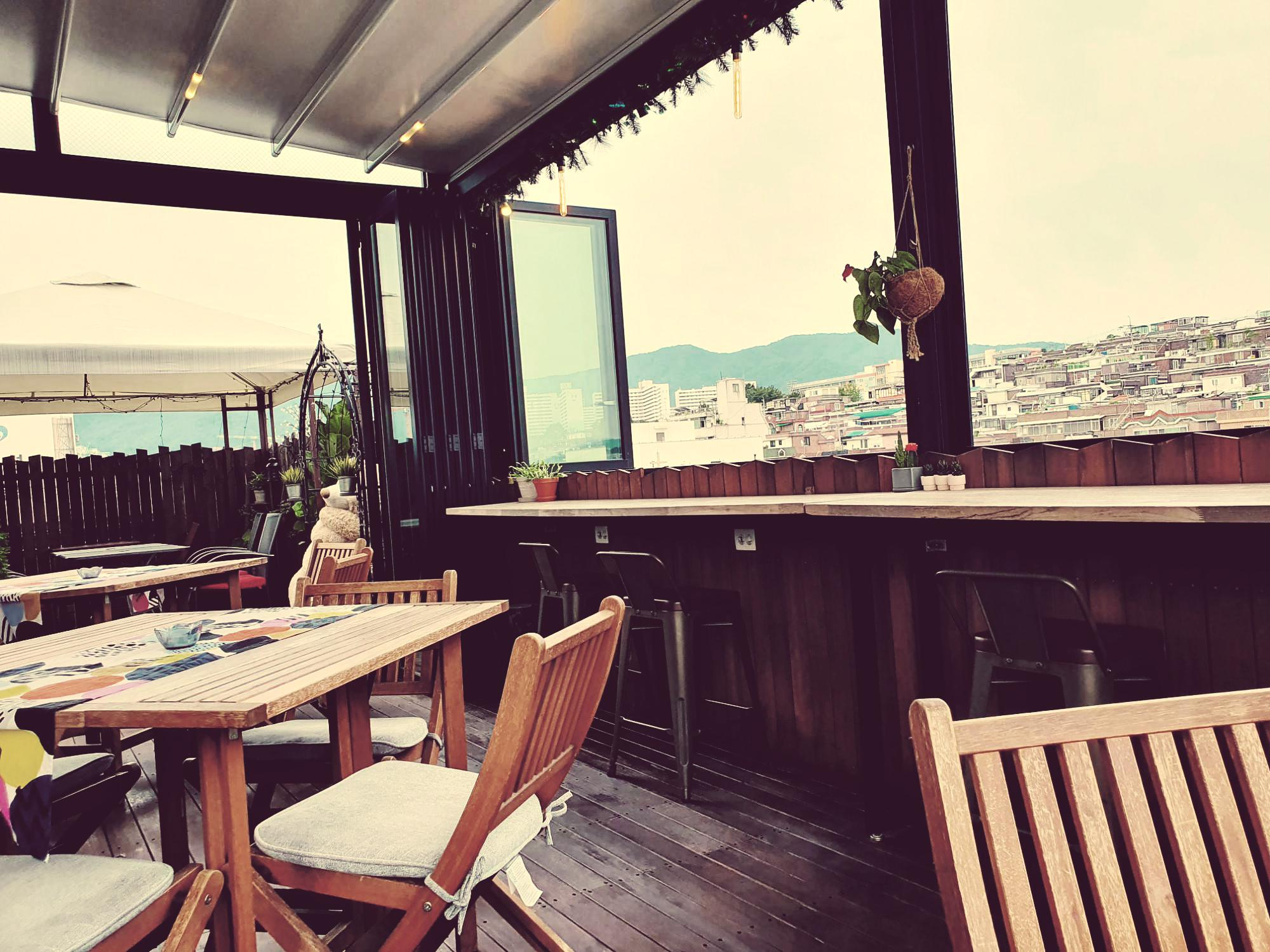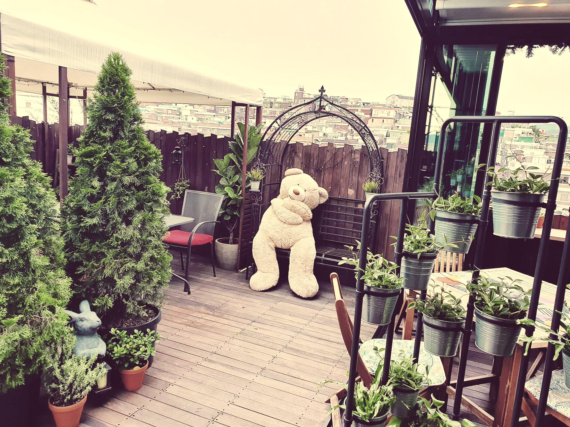 루프탑으로 되어 있어 여름에는 오픈되는 천장이고 비나 햇살이 강하도 풍경을 볼 수 있는 카페입니다. 카페분위기는 아기자기한 화분이 많은게 특징입니다. 사진 찍을 수 있는 곳도 많은데 여름에는 개방형으로 되어 있어 모기가 너무 많아 수시로 모기퇴치를 해야되는게 좀 걸립니다. 그래서 7~10월까지는 좀 별로이고 겨울이나 봄에 가면 예쁜 카페같습니다.