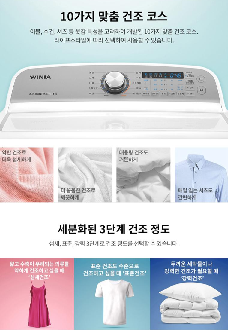 위니아 건조기의 주요기능