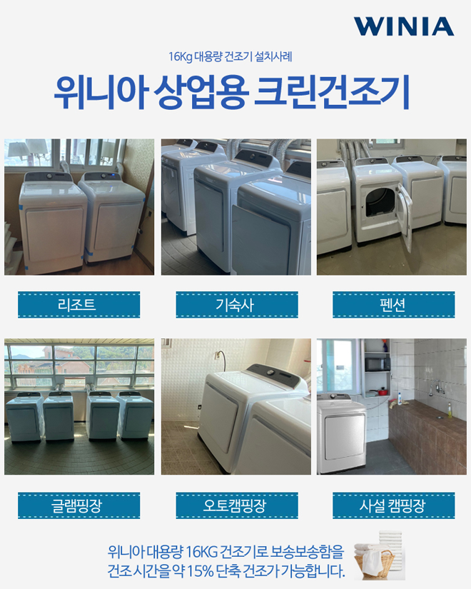 위니아 산업용 상업용 대용량 건조기 WWR16GEW 16kg 무료설치 의류 이불 빠른건조 산업용 상업용 건조기 빨래방 헬스장 목욕탕 찜질방 요양병원 호텔 모텔 숙박