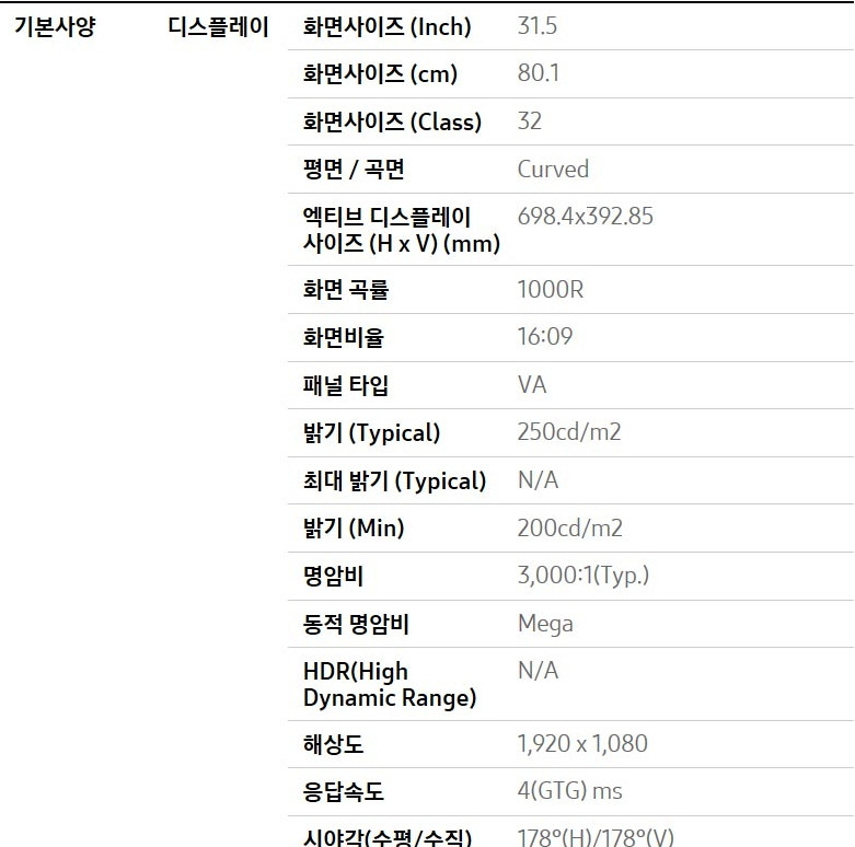 27인치 S27R35A(평면) 모니터보다 크기감이 확실히 크게 느껴집니다. 커브임에도 편안한게 볼 수 있습니다. 디자인도 27인치와 같은 디자인으로 만족하며 이 모델 또한 입력단자가 HDMI, RGV(VGA) 각 1개씩 있어 듀얼모니터 사용시 케이블이 별도로 있어야 된다는 점입니다. 32인치모니터는 테이블이 1,800m 이상되어야 적당하게 설치할 수 있습니다.