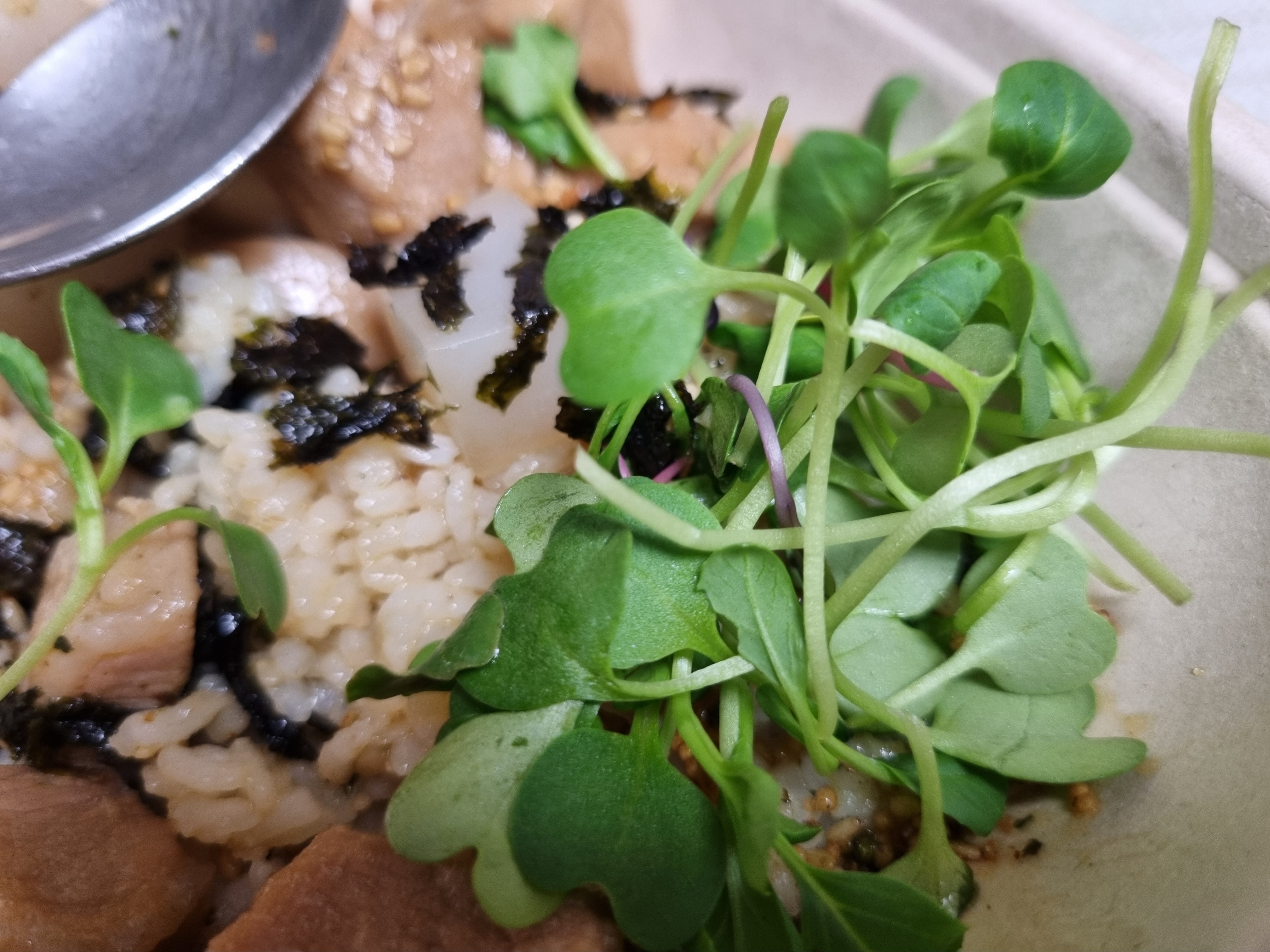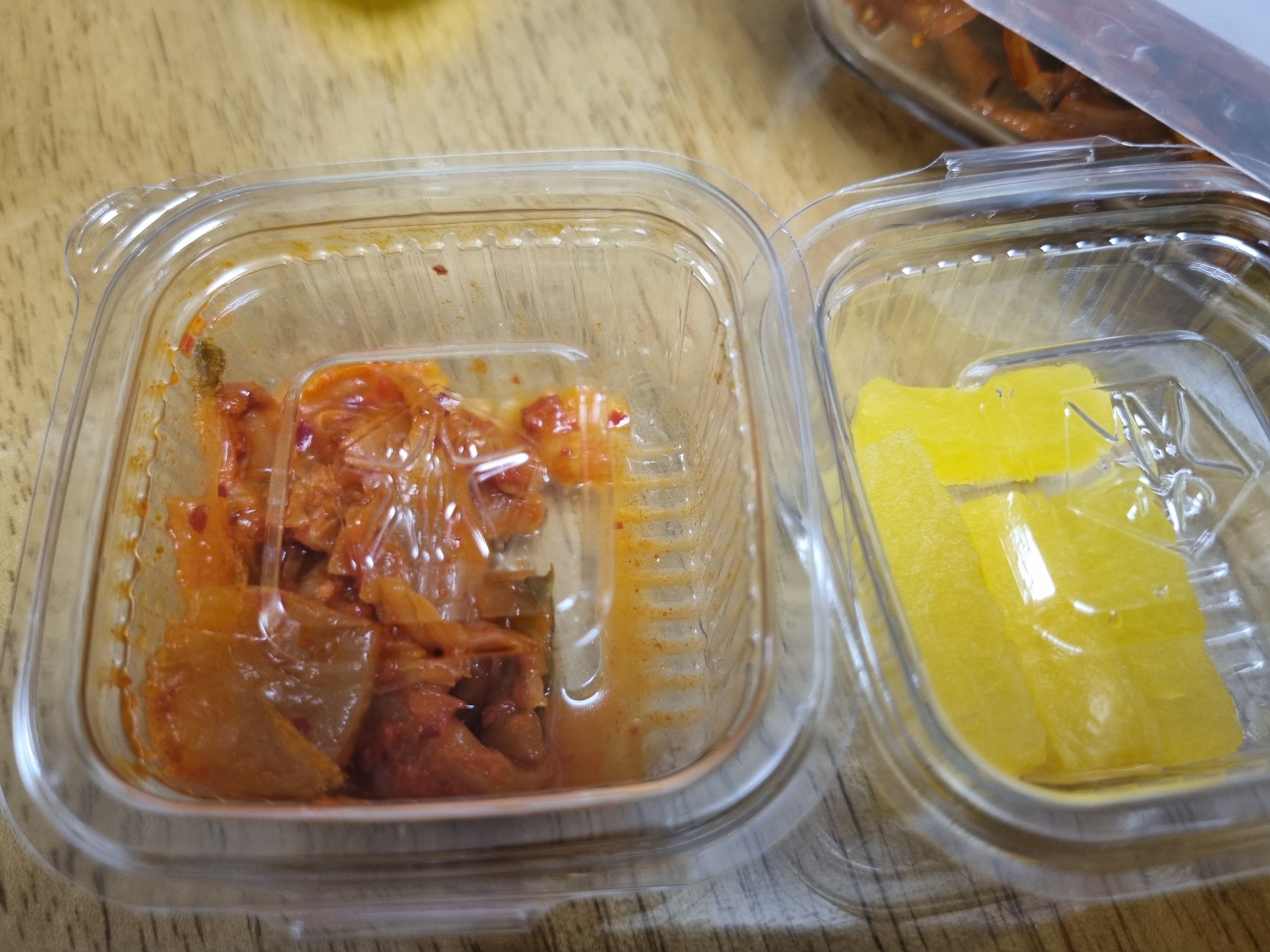 우선 가격도 5,900원인데가 2가지의 덮밥이 들어가 있는 느낌입니다. 편의점용 도시락하고는 비교가 안될 정도이고 한솥보다도 괜찮았습니다. 근처에 있는 직화덮밥보다 깔끔하고 밝은 분위기로 좋았습니다. 반찬은 공통으로 노란 단무지와 볶음 김치를 줍니다. 덮밥하나로도 반찬이 필요없을 정도로 괜찮습니다. 매장에서 먹어보기도 하고 포장도 했지만 포장상태도 매우 깔끔하고 5,900원짜리라고 상상하기 힘들정도로 괜찮습니다.