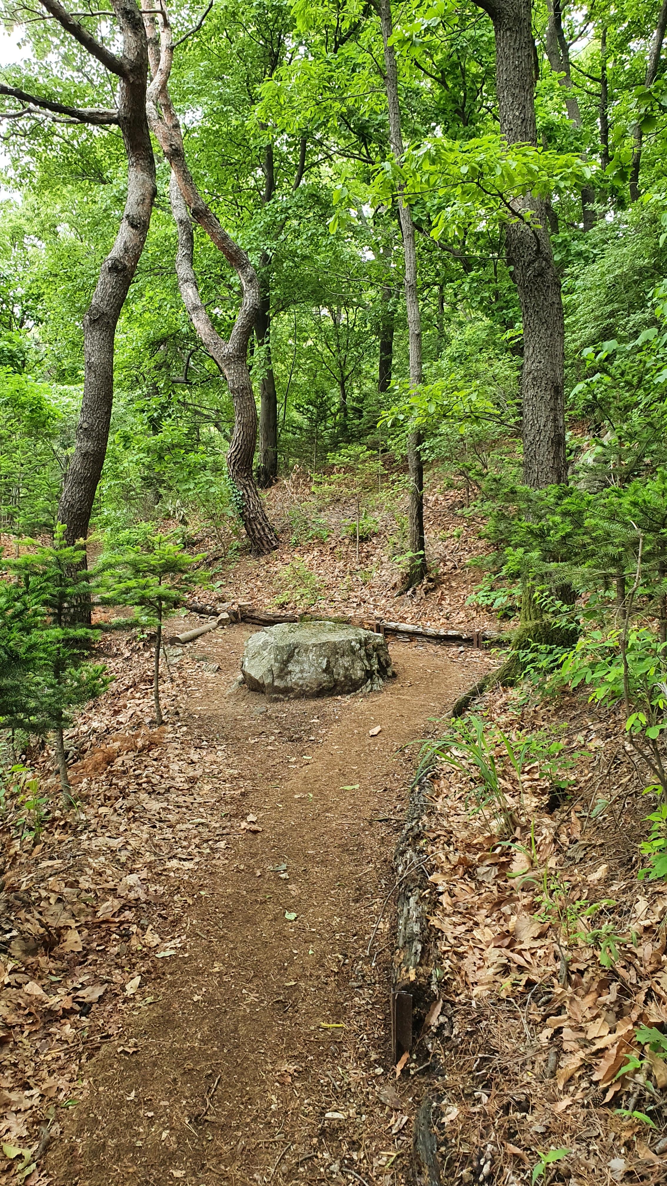 우린 정상에 왔지만 지금 여기가 정상인가 아무것도 없고 능선만 있는데 이게 정상인가? 싶고 이렇게 올라오면서 사람도 없고 그 흔한 벤치도 없습니다. 흙으로 된 산이라 어디 앉을자리도 없고 숲이 울창해 하늘도 안보이고 경치도 없는게 특징입니다.