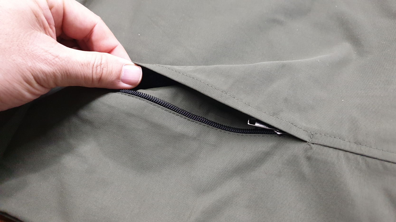 지퍼도 방수였다면 더 좋았겠지만 마감이 잘 되어 있어 비가 들어갈 염려는 안 해도 될 정도의 디자인입니다. 아주 깔끔합니다. 주머니 입구 사이즈도 고민하지 않았을까 할 정도로 적당한 크기로 잘 만들었습니다. 옷 사이즈에 맞지 않은 큰손은 들어가기 힘이 듭니다