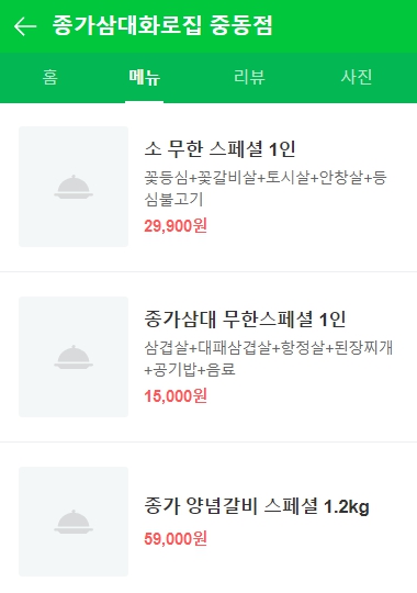 | 양념갈비 스페셜 1.2kg | 59,000원 |