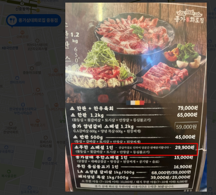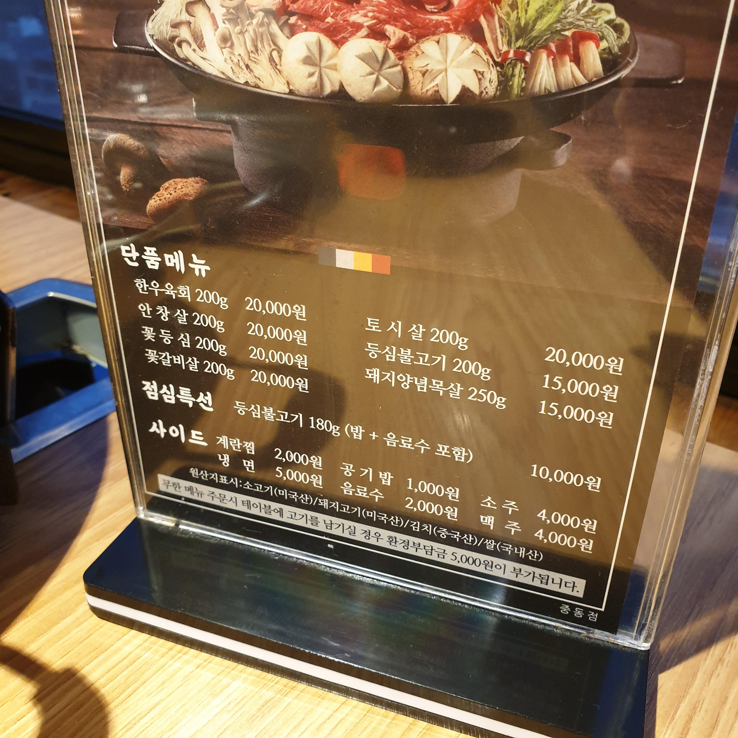 홀에 계신 아주머니는 금액이 맞나고 하니 소고기값이 인상되었다고 하는데 미국산 소고기가 얼마나 오르길래 알고 온 금액의 2배가 올라가는건지? 이분의 말대로라면 근처에 있는 고깃집들은 가격을 왜 2배로 안올릴까요?