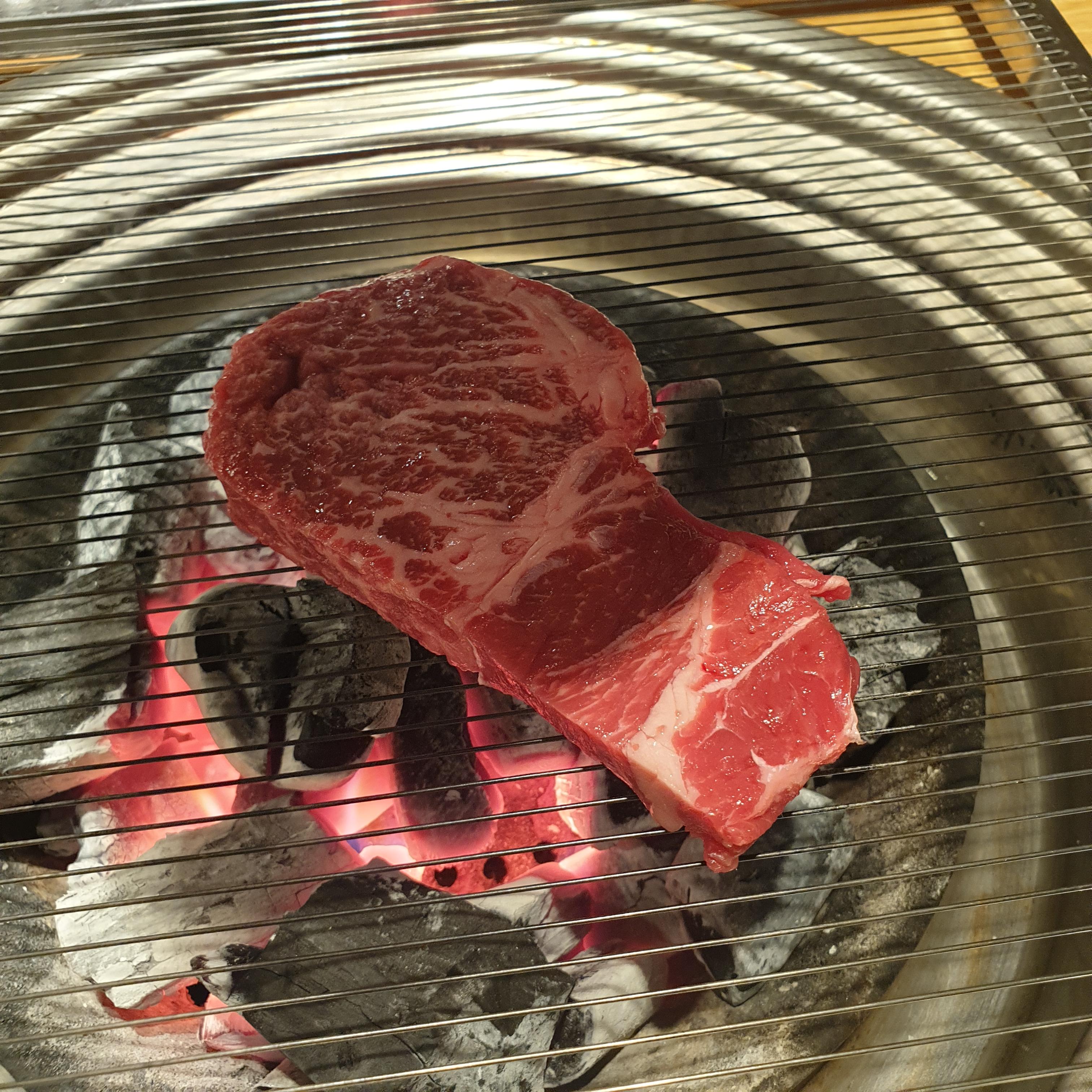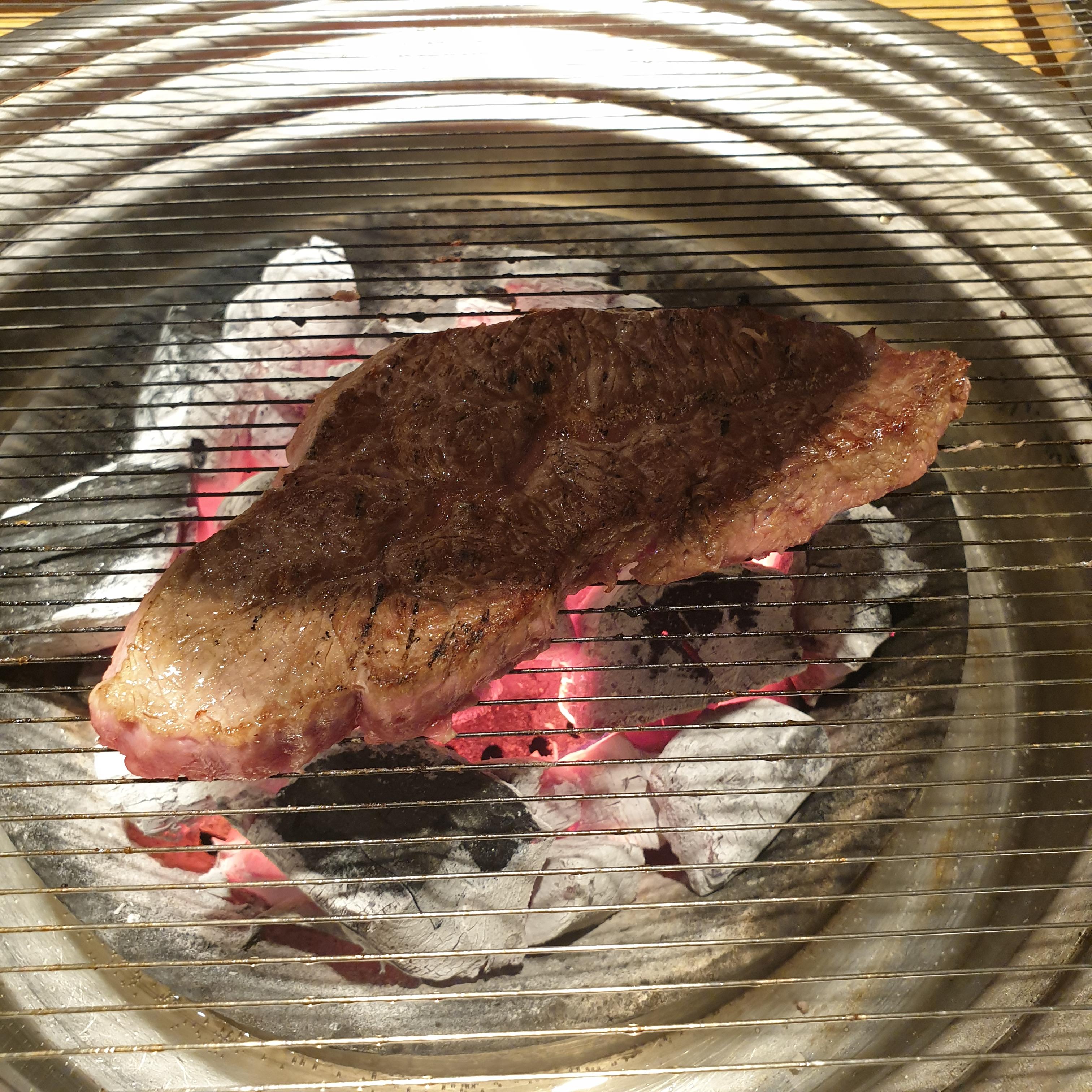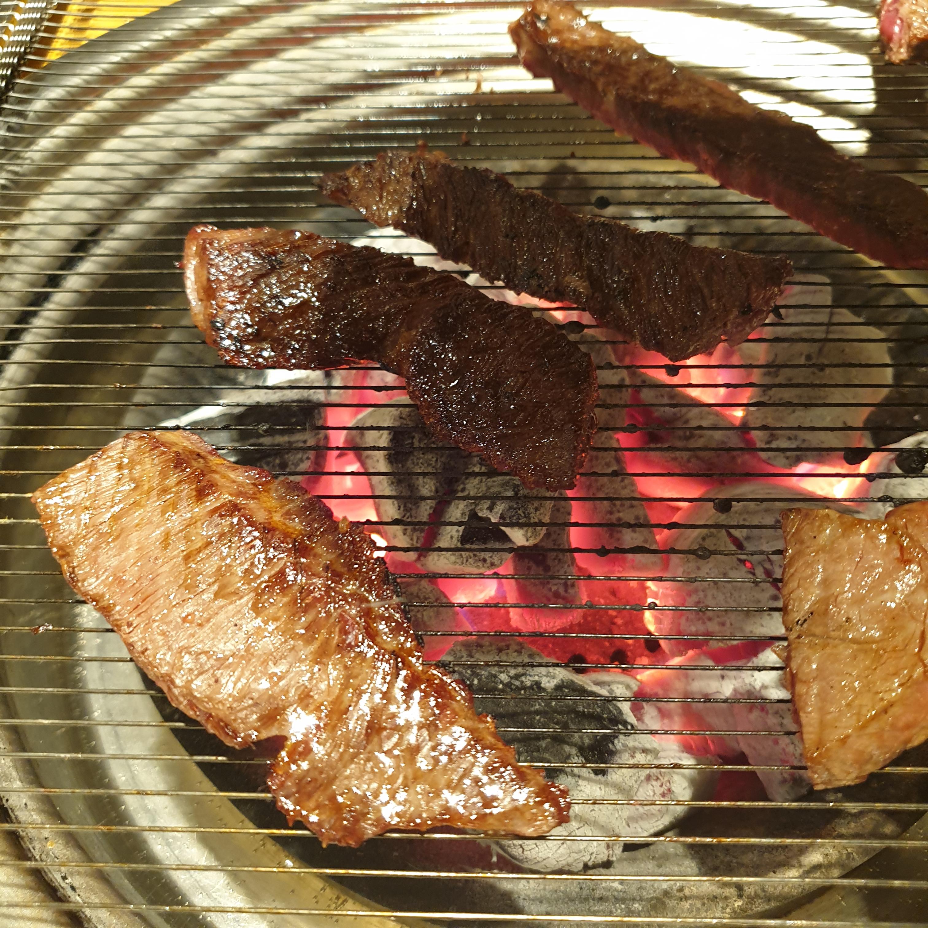 고기는 크게 좋지도 나쁘지도 않은 정도의 소고기로 조각조각난 고기를 여러개 줍니다. 블로그에는 LA갈비도 있었는데 실제로 있는 메뉴판에는 LA갈비가 들어가 있지 않으니 참조하세요. 부위별로 고기를 구웠습니다.