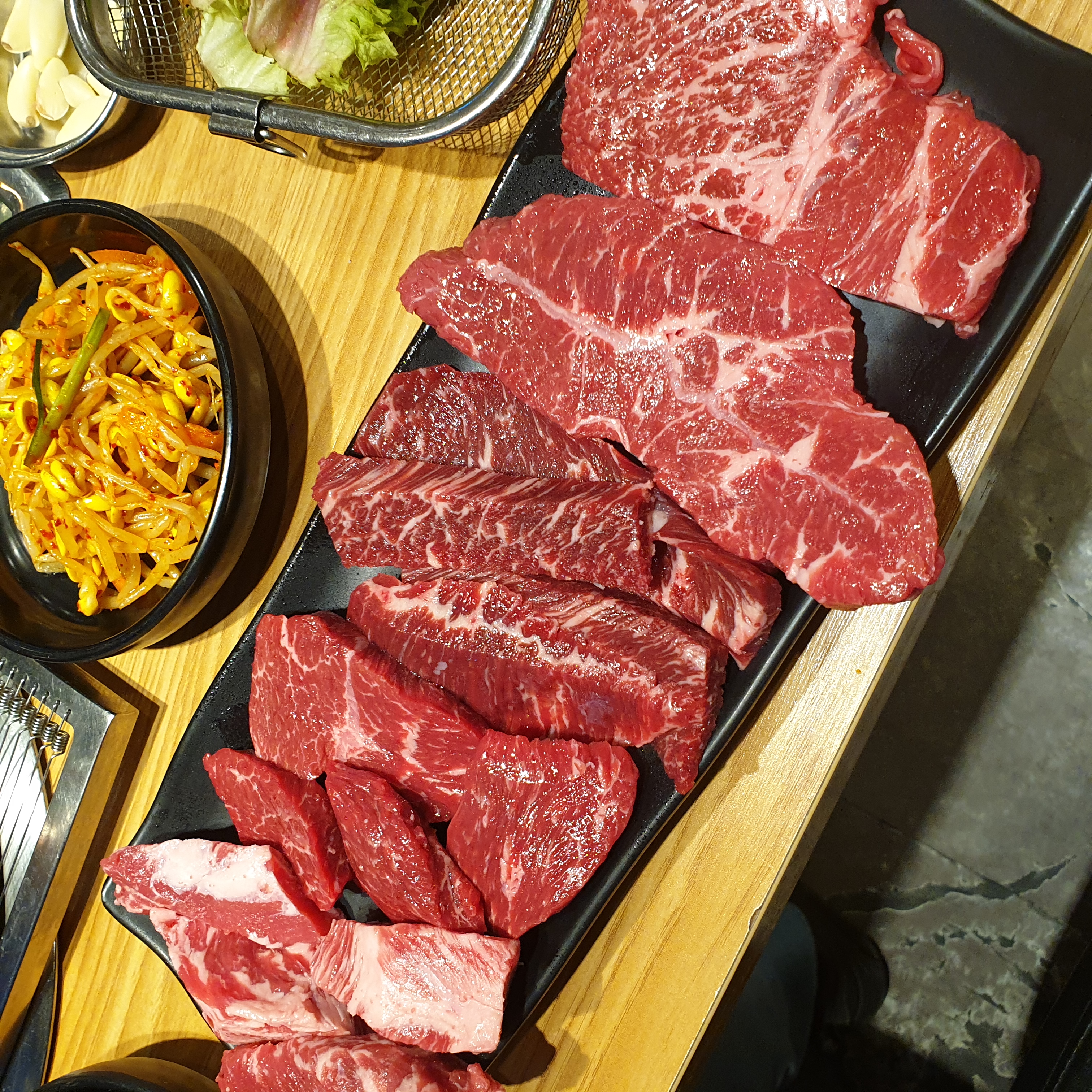 내부인테리어 깨끗하고 손님도 없습니다. 아마 저처럼 한번 오고 안오게 되는게 아닌가 싶습니다. 고기를 먹는 팀보다는 불고기를 먹는 팀이 더 많았는데 아마 저처럼 잘못알고 왔으나 나가기 뭐해서 드시는 분들이 많은 것 같습니다. 불고기 맛이 나쁘지는 않습니다. 가격을 명확하게 명시하고 잘못된 금액을 바로 잡아서 판매를 하면 좋겠습니다.