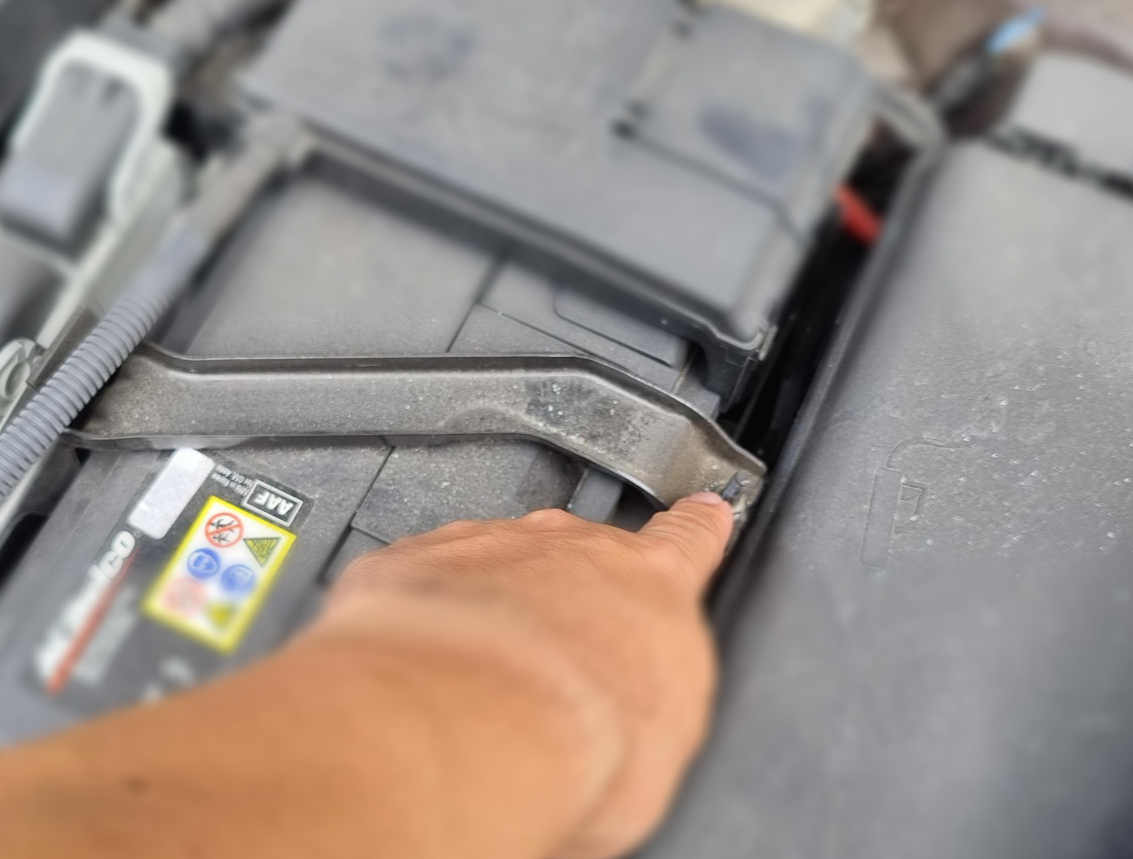4. 차종마다 배터리의 고정 방법이 다릅니다. 거의 비슷하게 되어 있으니 몇 군데만 풀어주면 쉽게 배터리가 탈거됩니다.
