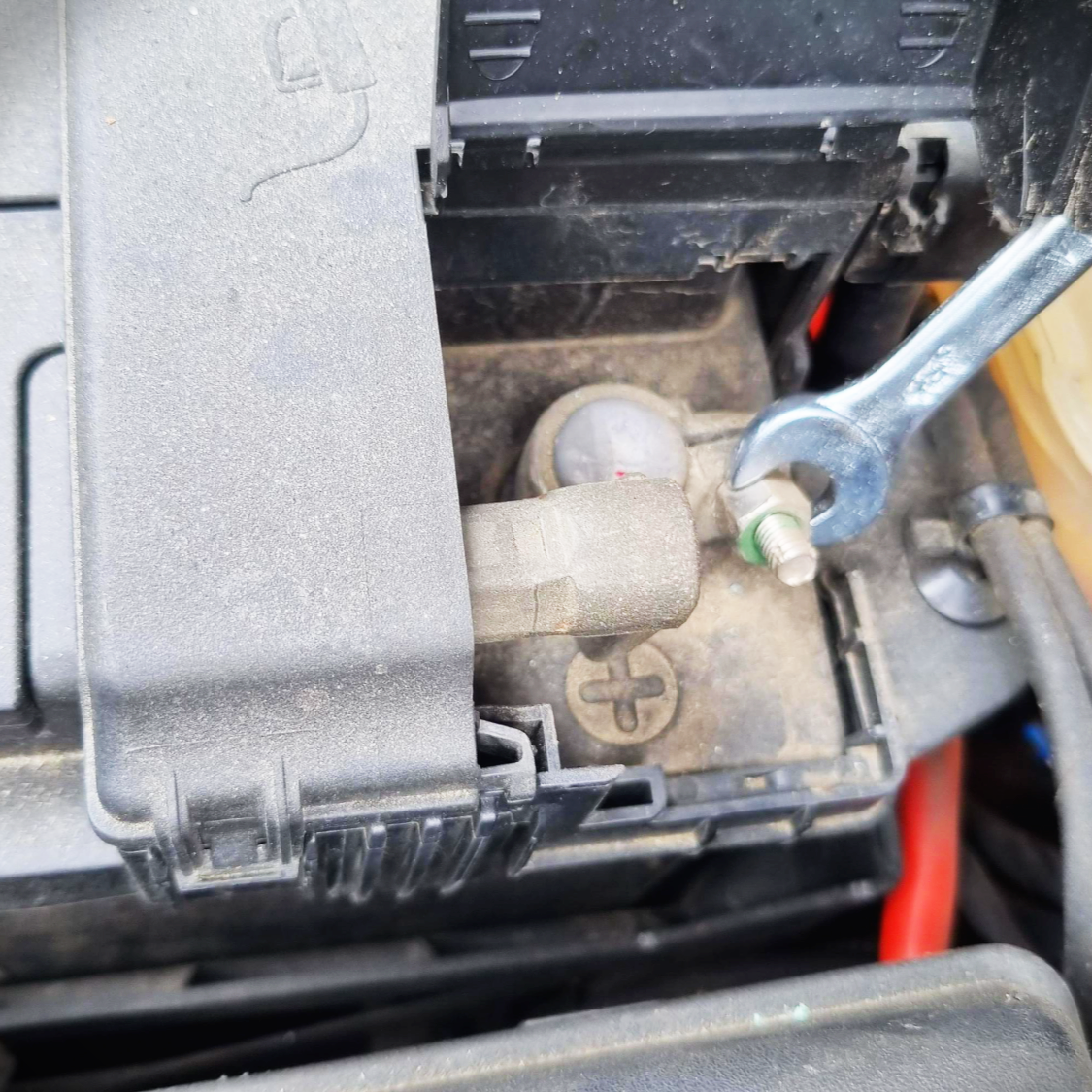 3. 배터리 음극을 먼저 제거합니다. 도구를 미리 준비해야 되는데 없을 경우 배터리 판매처에서 대여도 해줍니다.