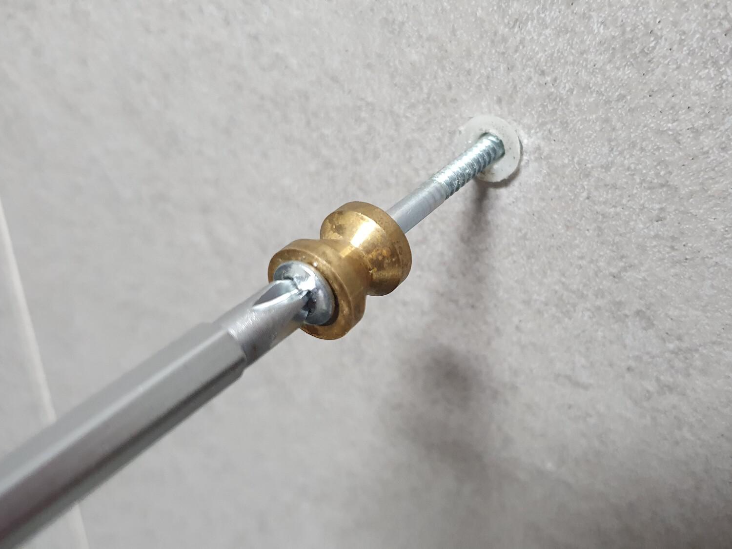 수건걸이이와 브라켓 연결 후 수건걸이 고정하기