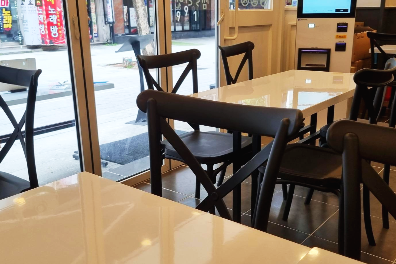 키오스크로 주문하고 직접 픽업하고 먹고나면 손님이 직접 반납구에 놓아야 되는 곳으로 종업원이 필요 없는 것 같은데 홀에 1명이 있는데 서빙을 하지 않는 특이한 음식점입니다. 음식을 가져다 주던가? 치우던가 뭔가를 해야될건데 뭘 해야 되는지 모르는 음식점 같습니다.