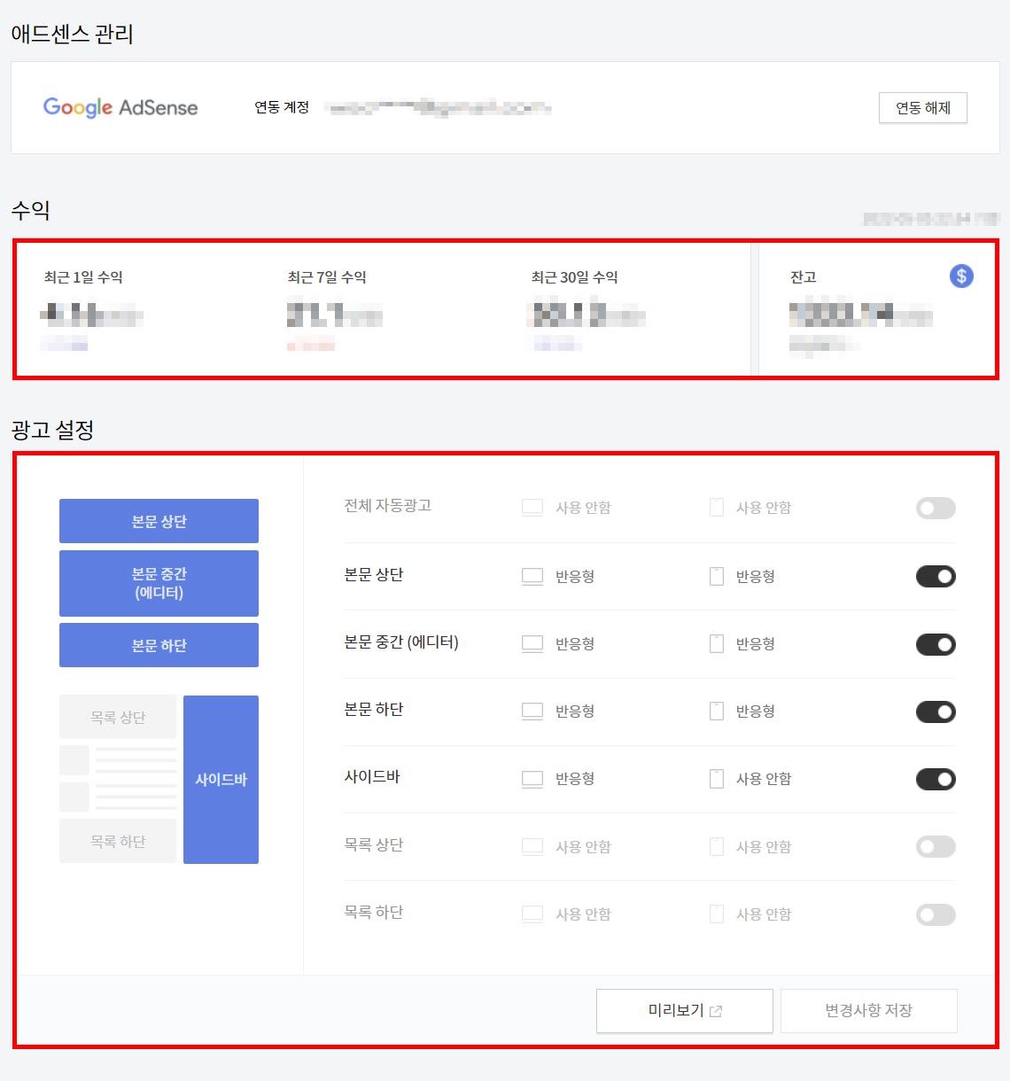 애드센스, 카카오 애드핏 관리페이지 정상작동
