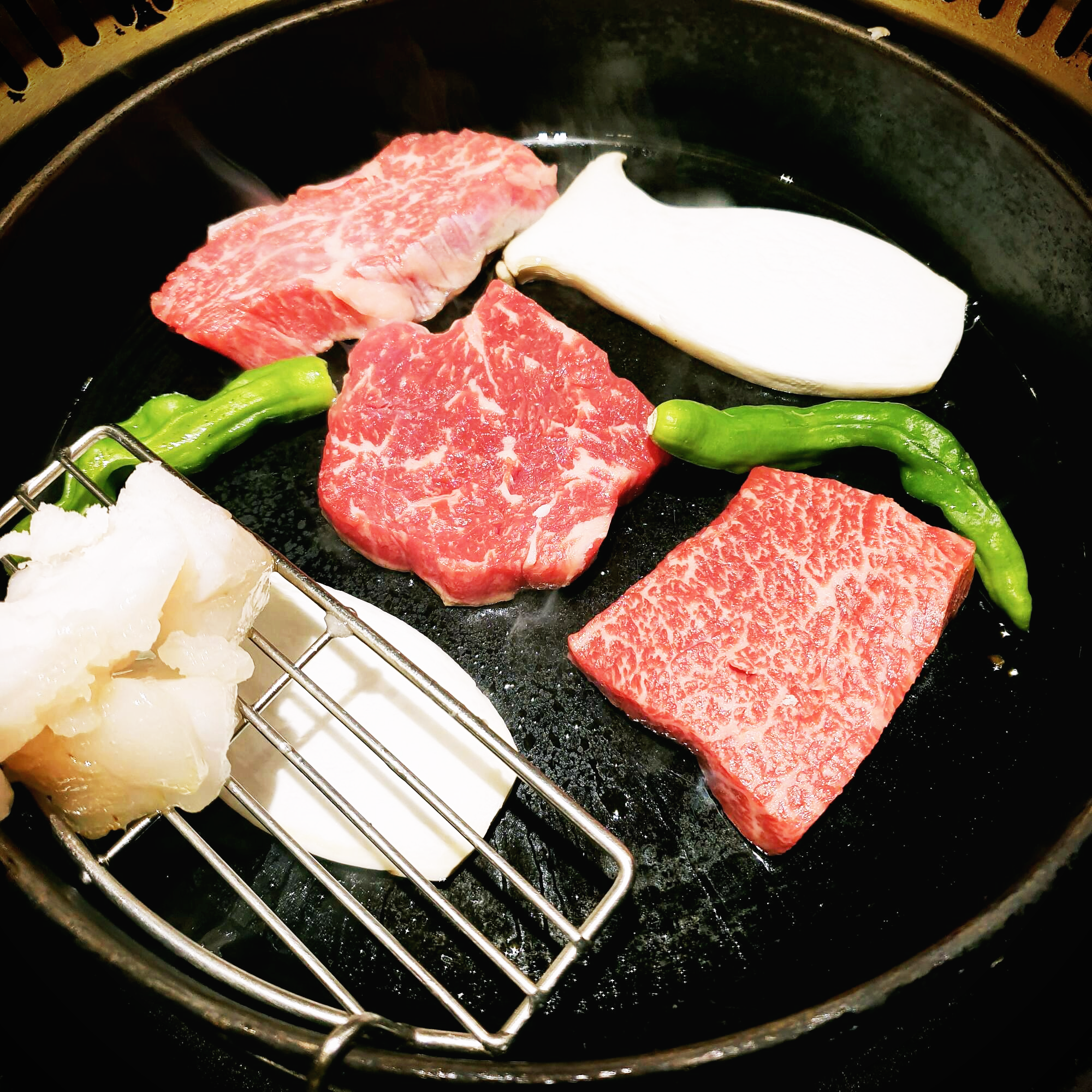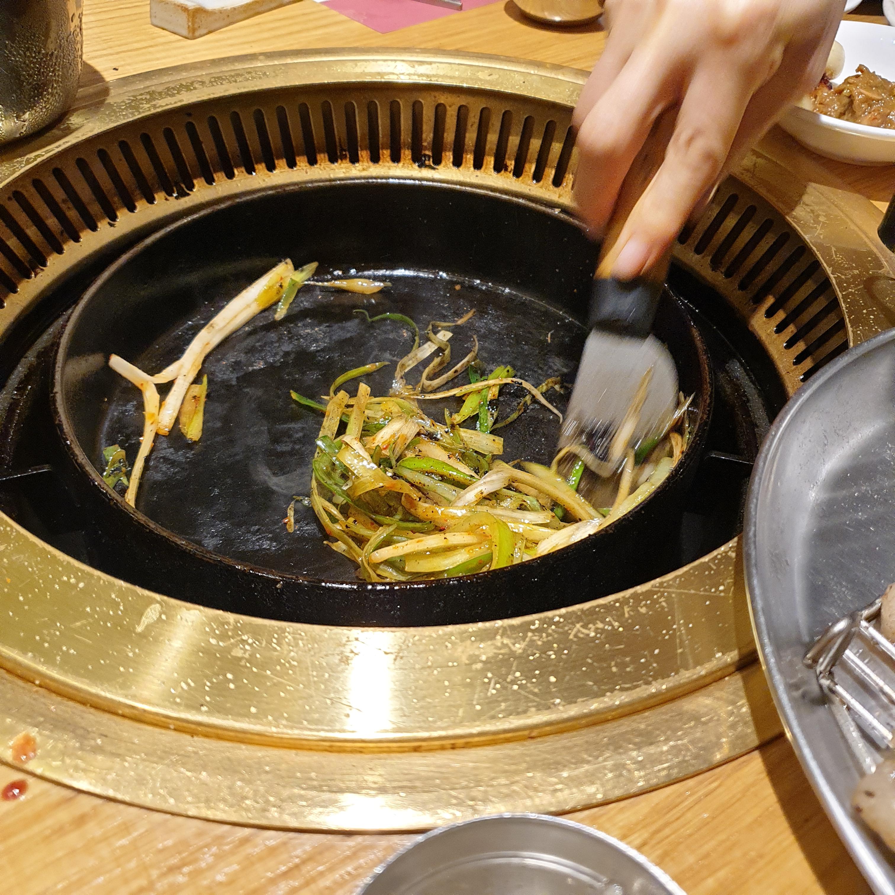 한우라서 6명이 저 작은 주물팬 하나로 커버가 됩니다.