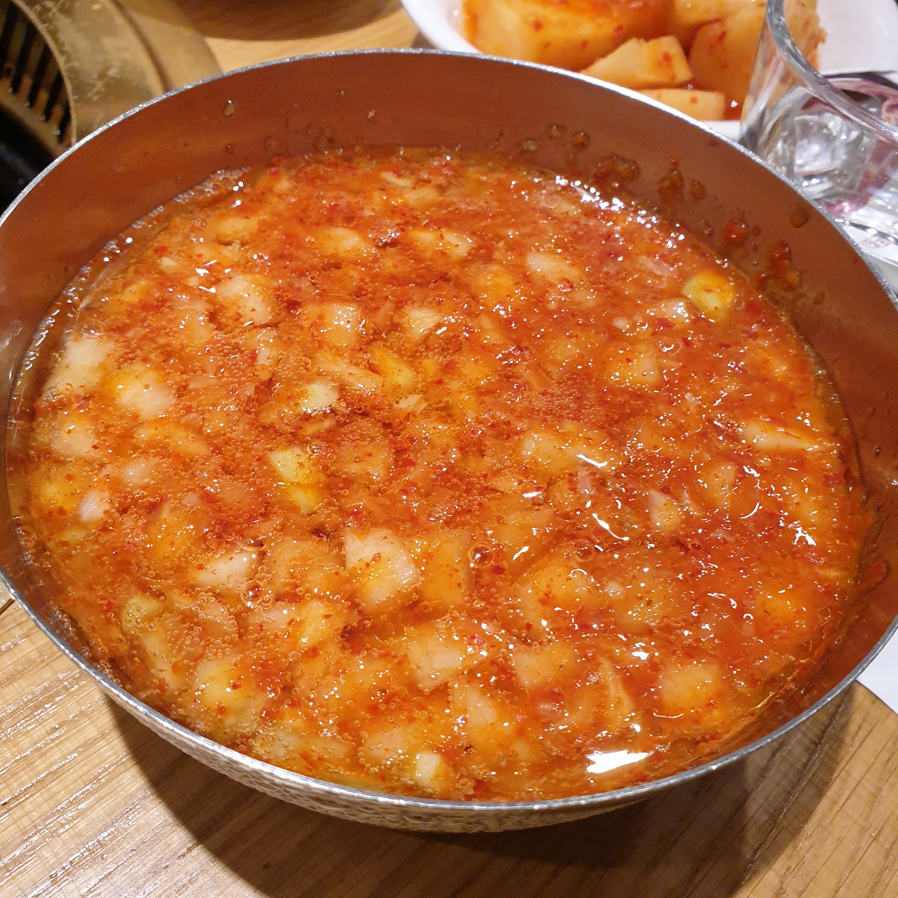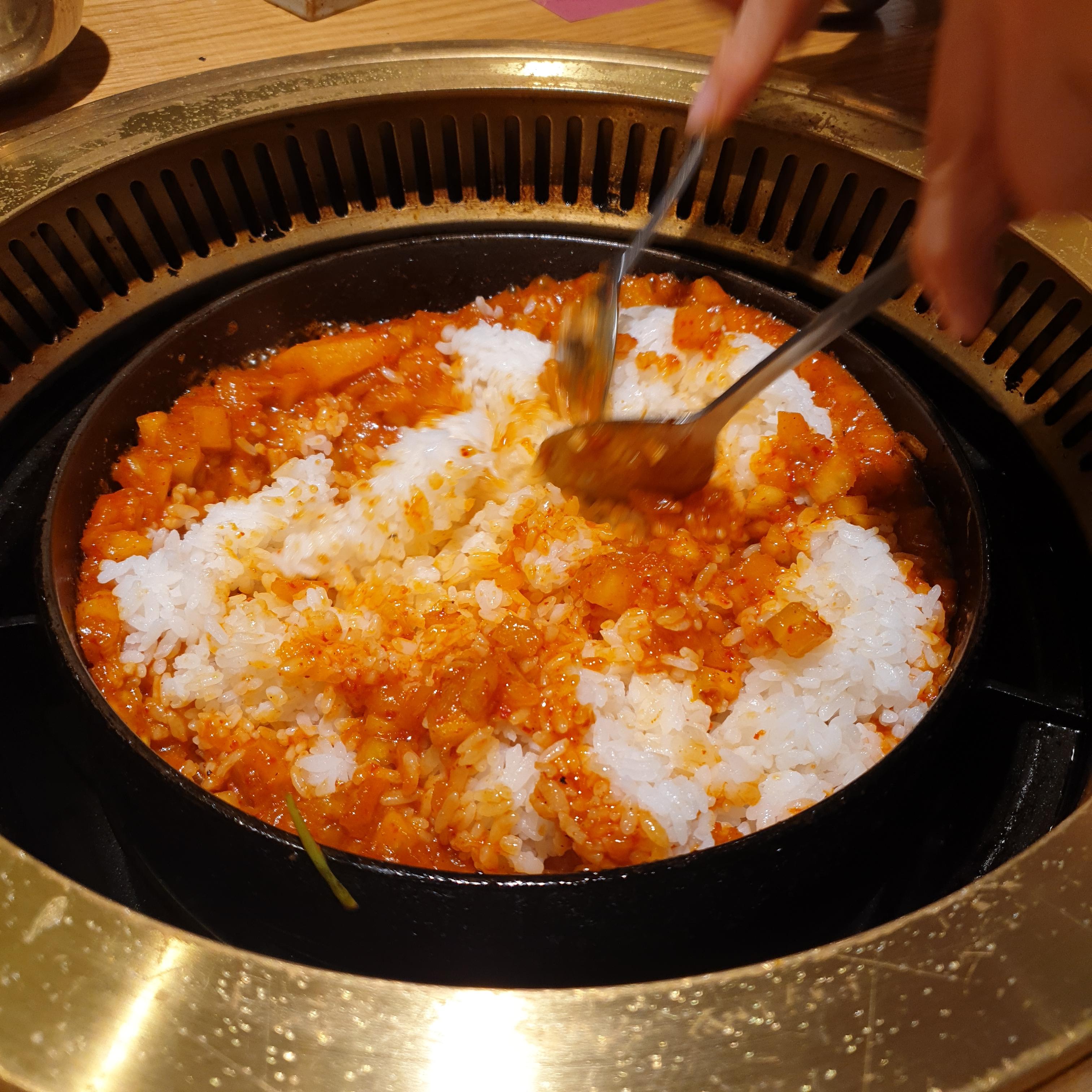 고기를 먹고 난 후에 꼭 먹어야 되는 깍두기 볶음밥 먹었습니다.