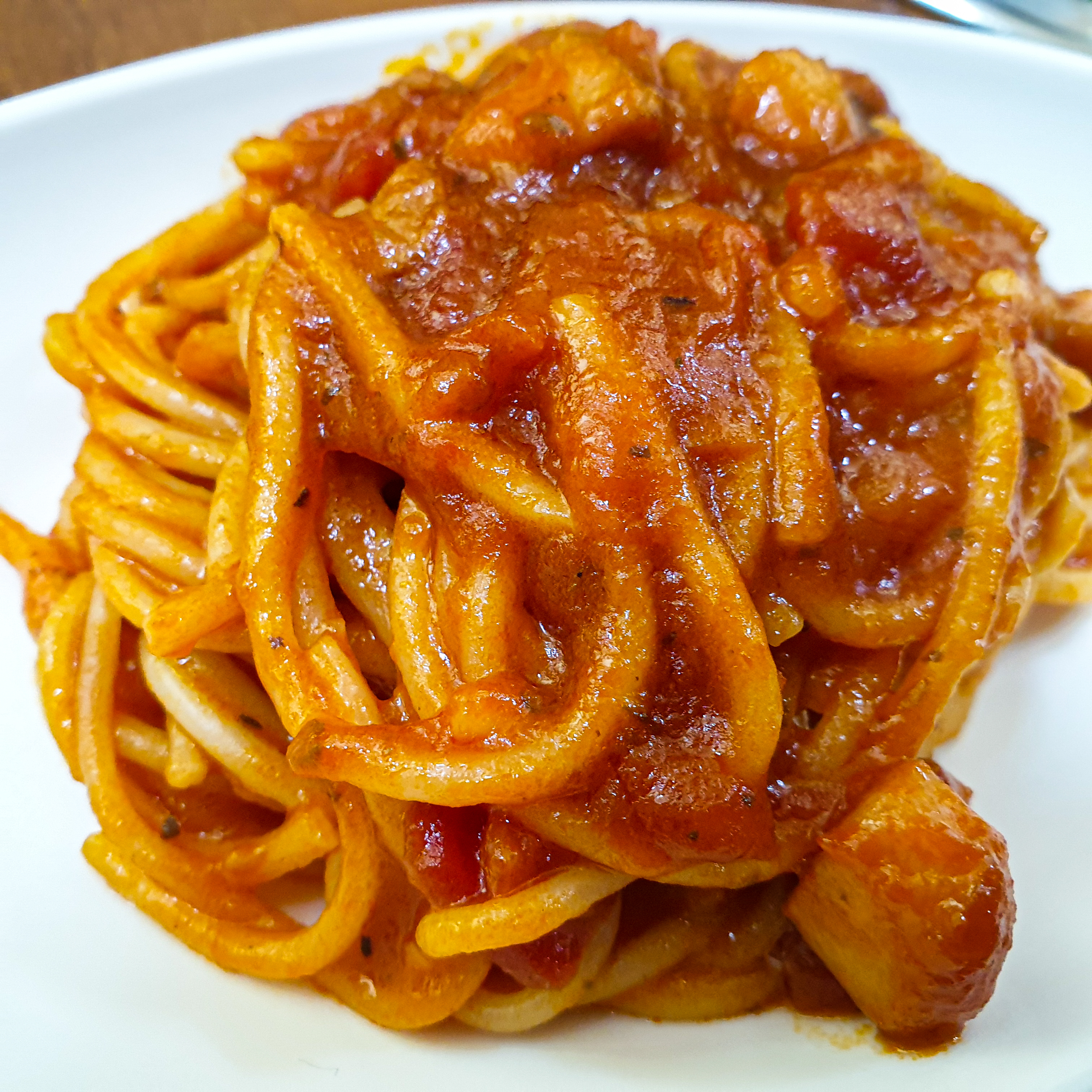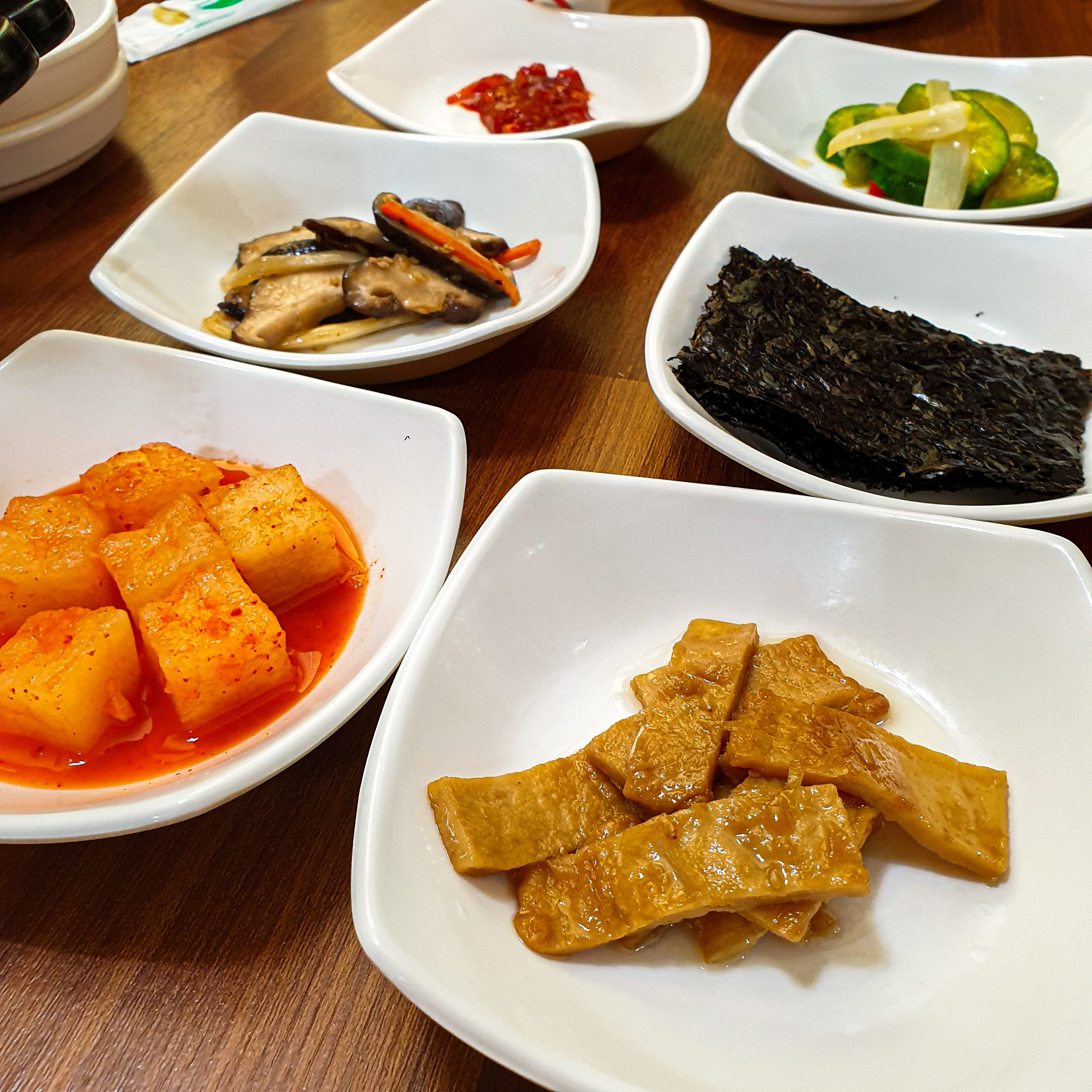깍두기, 버섯볶음, 낙지젓갈, 애호박볶음, 생김, 어묵볶음, 토마토스파게티로 총 7가지 밑반찬이 나왔습니다. 메뉴가 바뀌는지는 모르겠습니다. 그냥 평범한 밑반찬입니다.