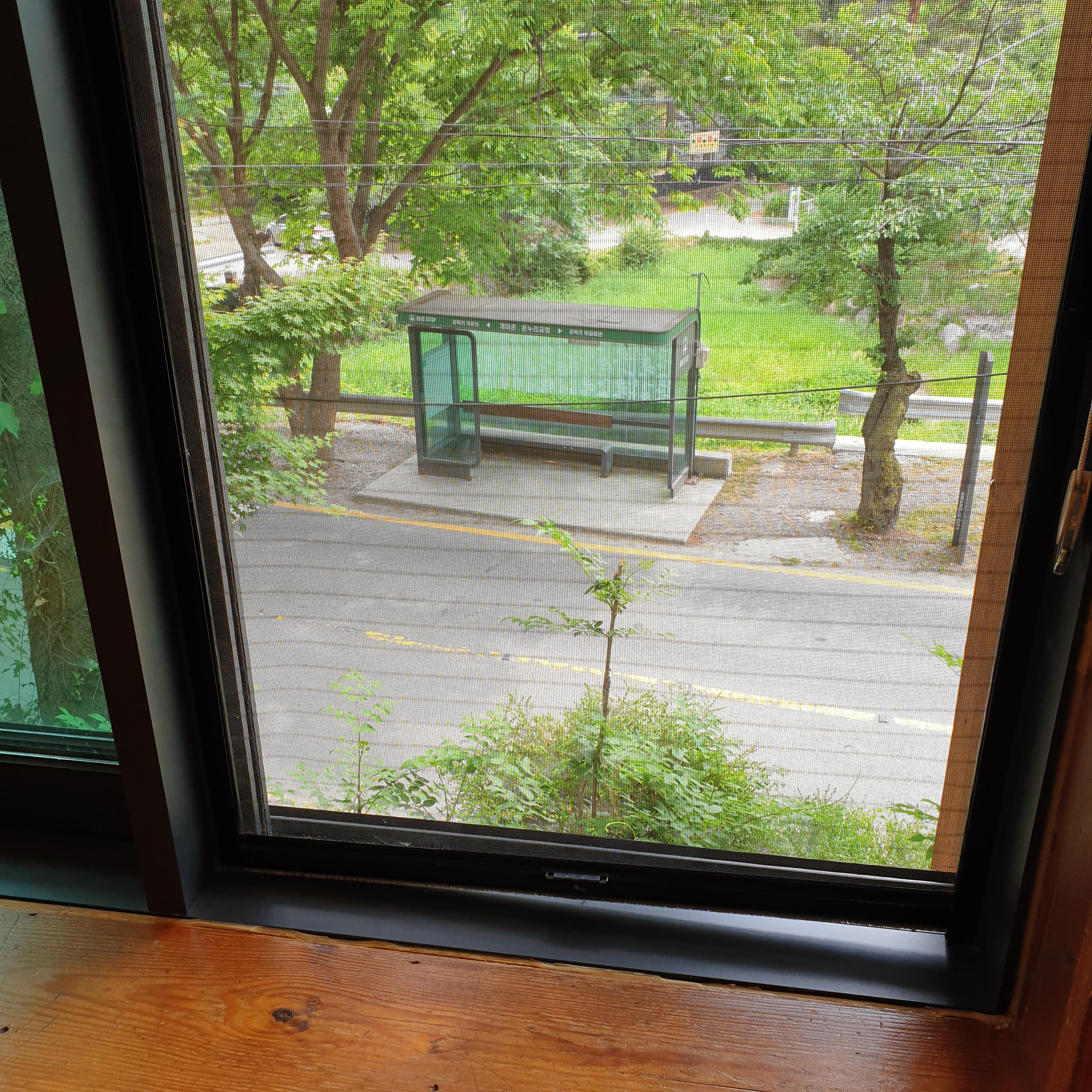 별채에서 바깥으로 보면 개미촌 버스정류장이 있습니다. 버스로도 갈 수 있는 맛집입니다.