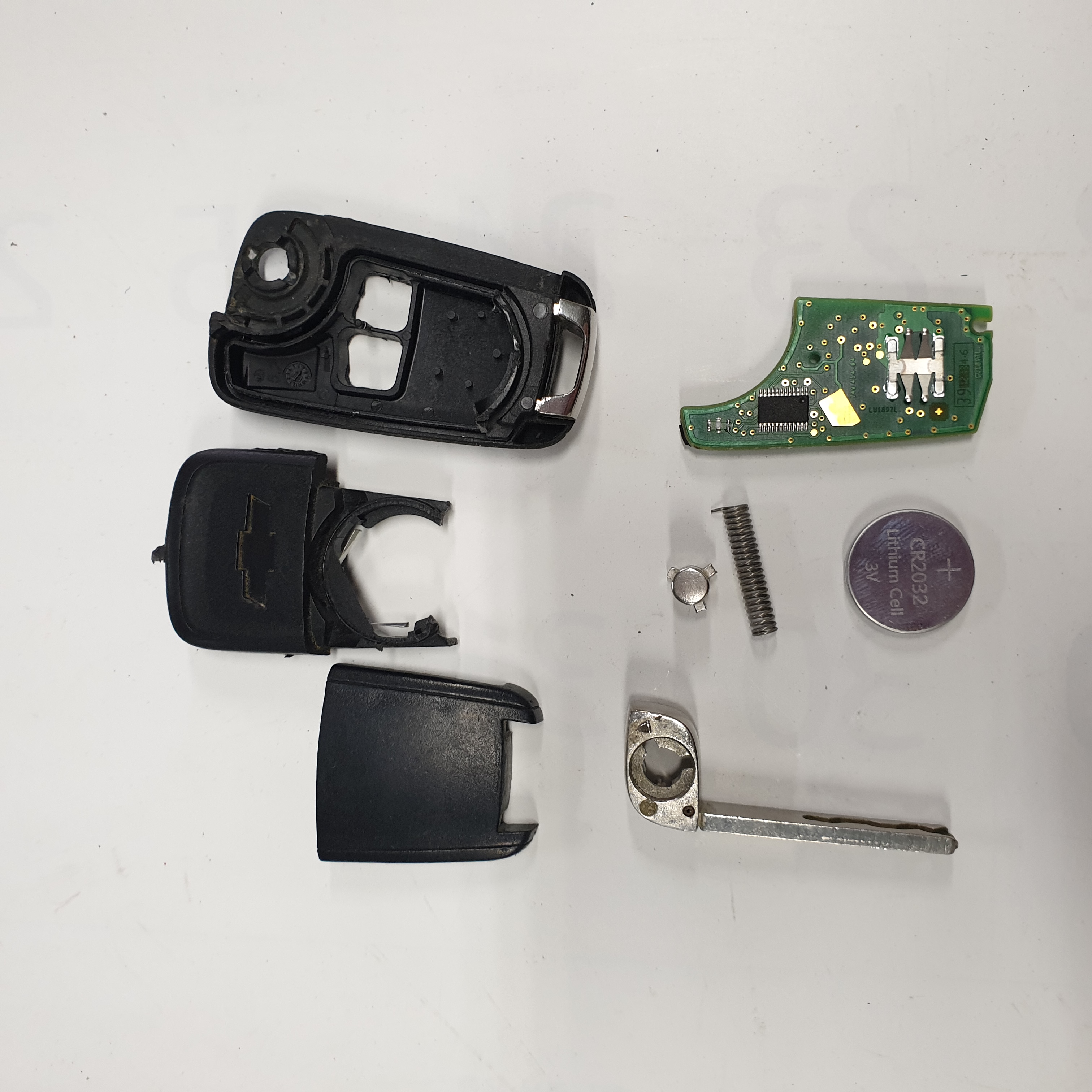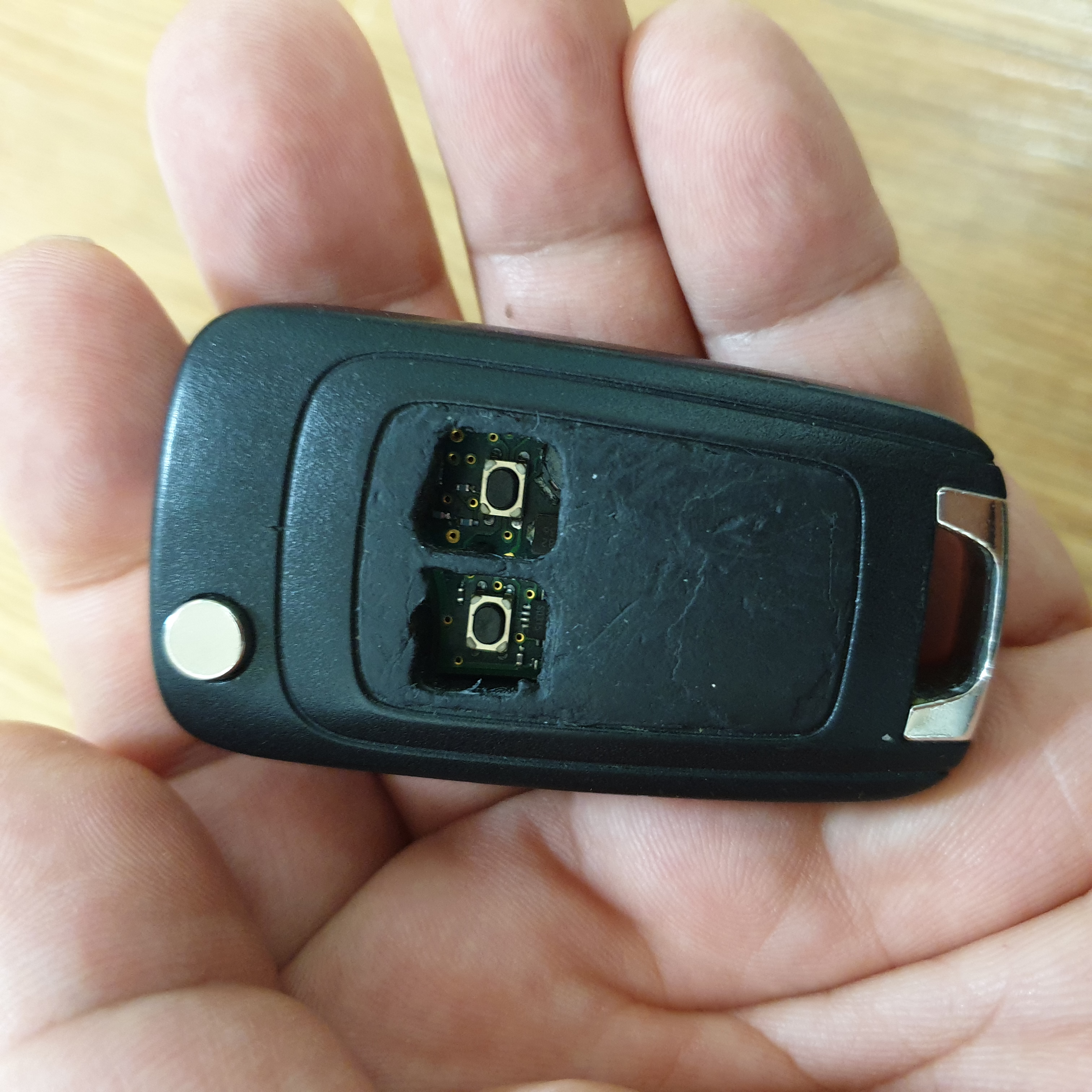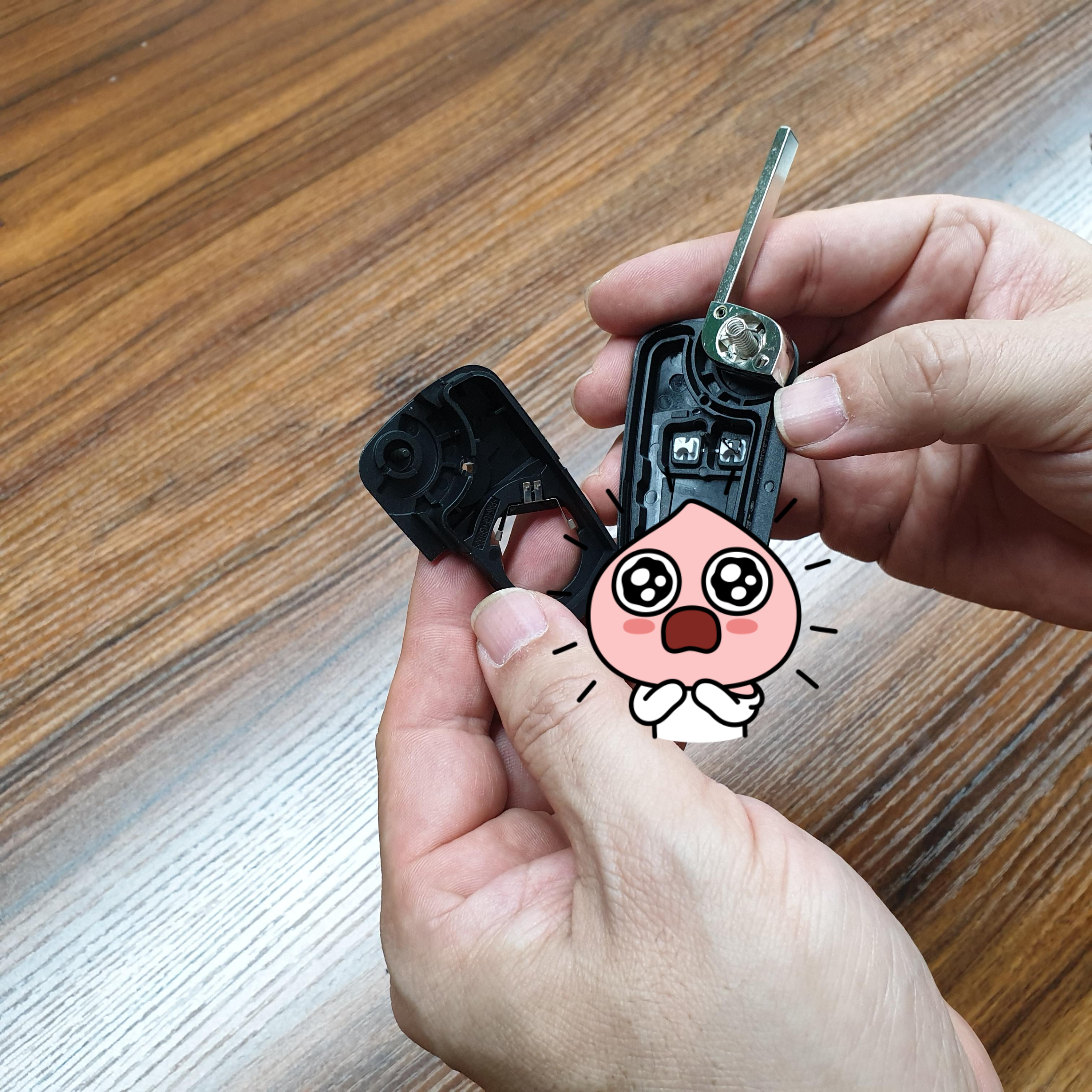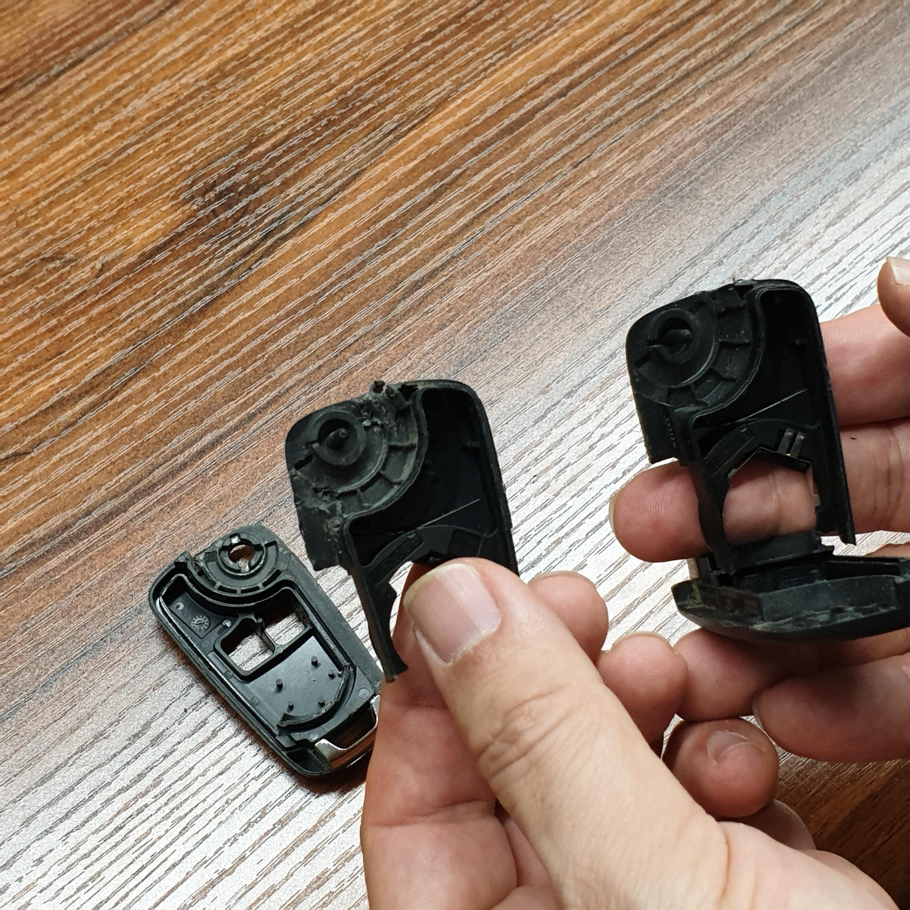 5. 파손된 케이스는 버리고 기판과 배터리, 수동키를 준비해고 새 케이스로 조립하면 됩니다.