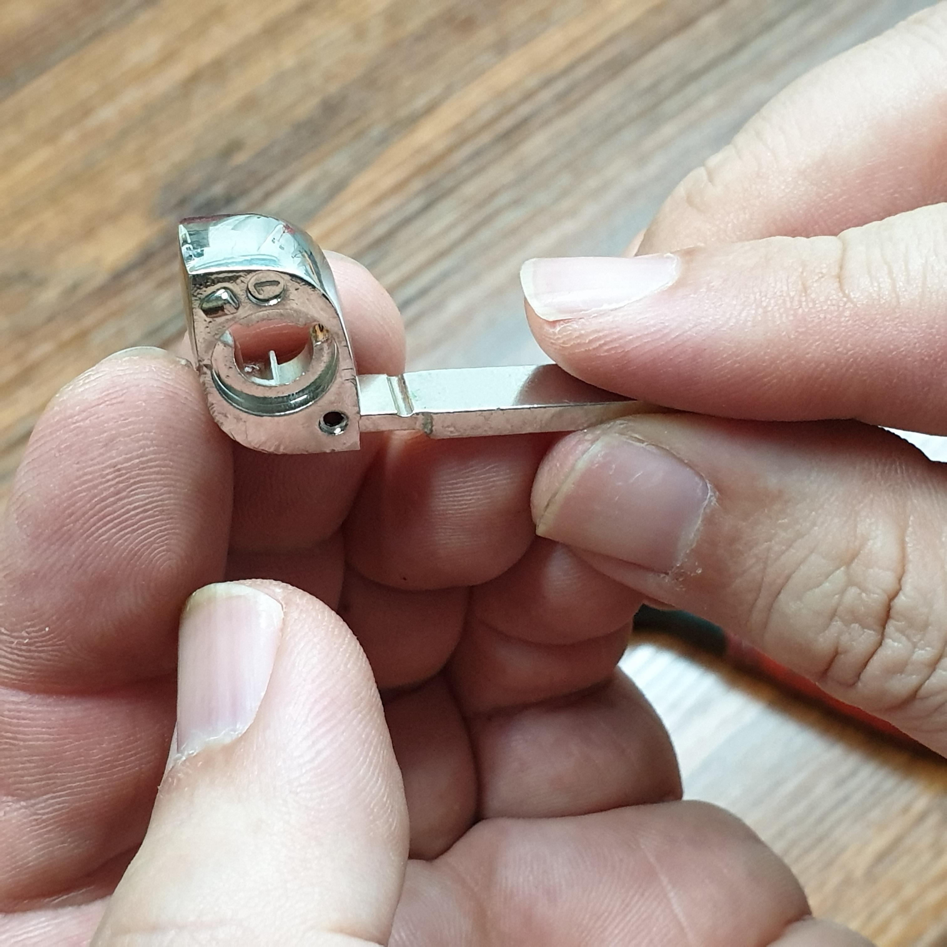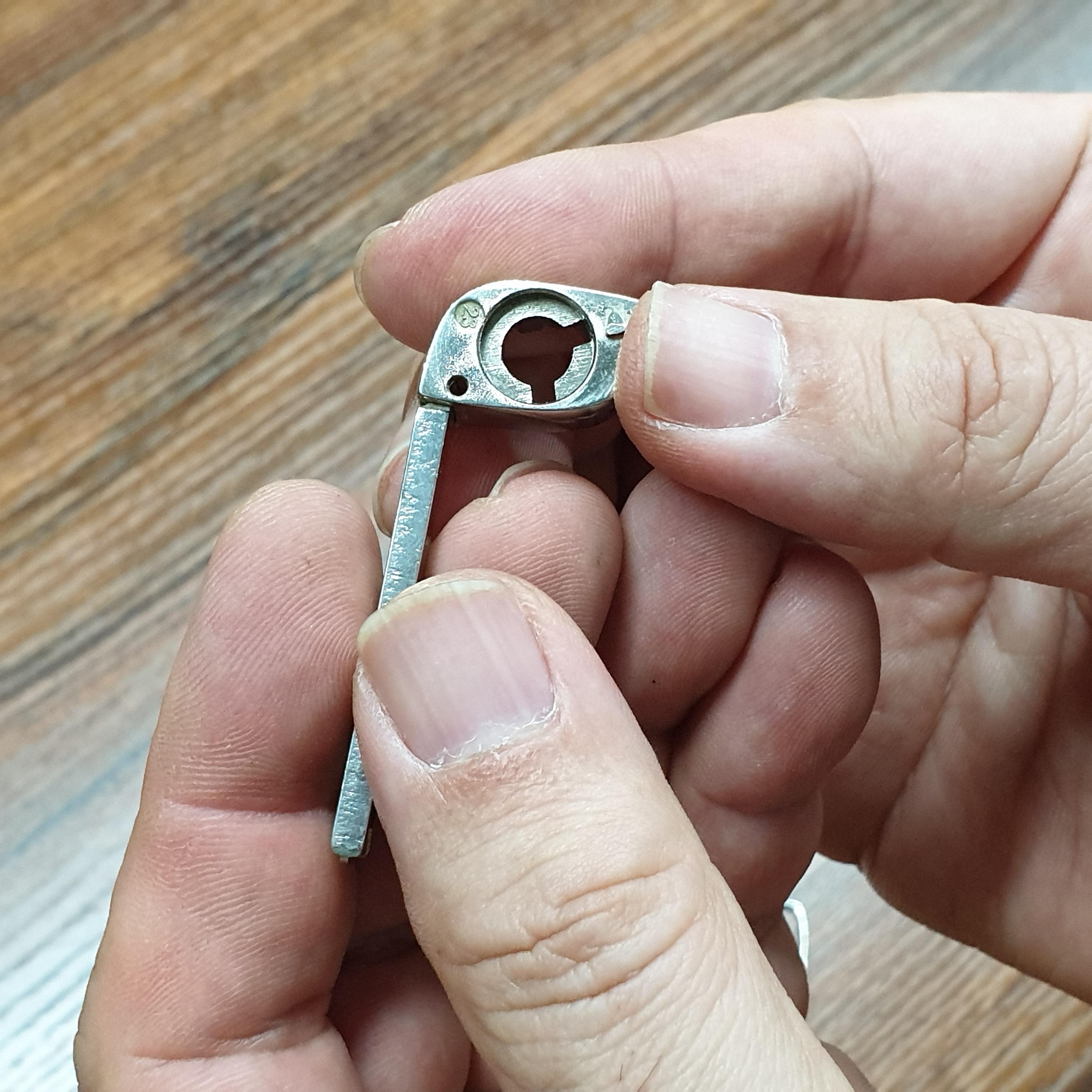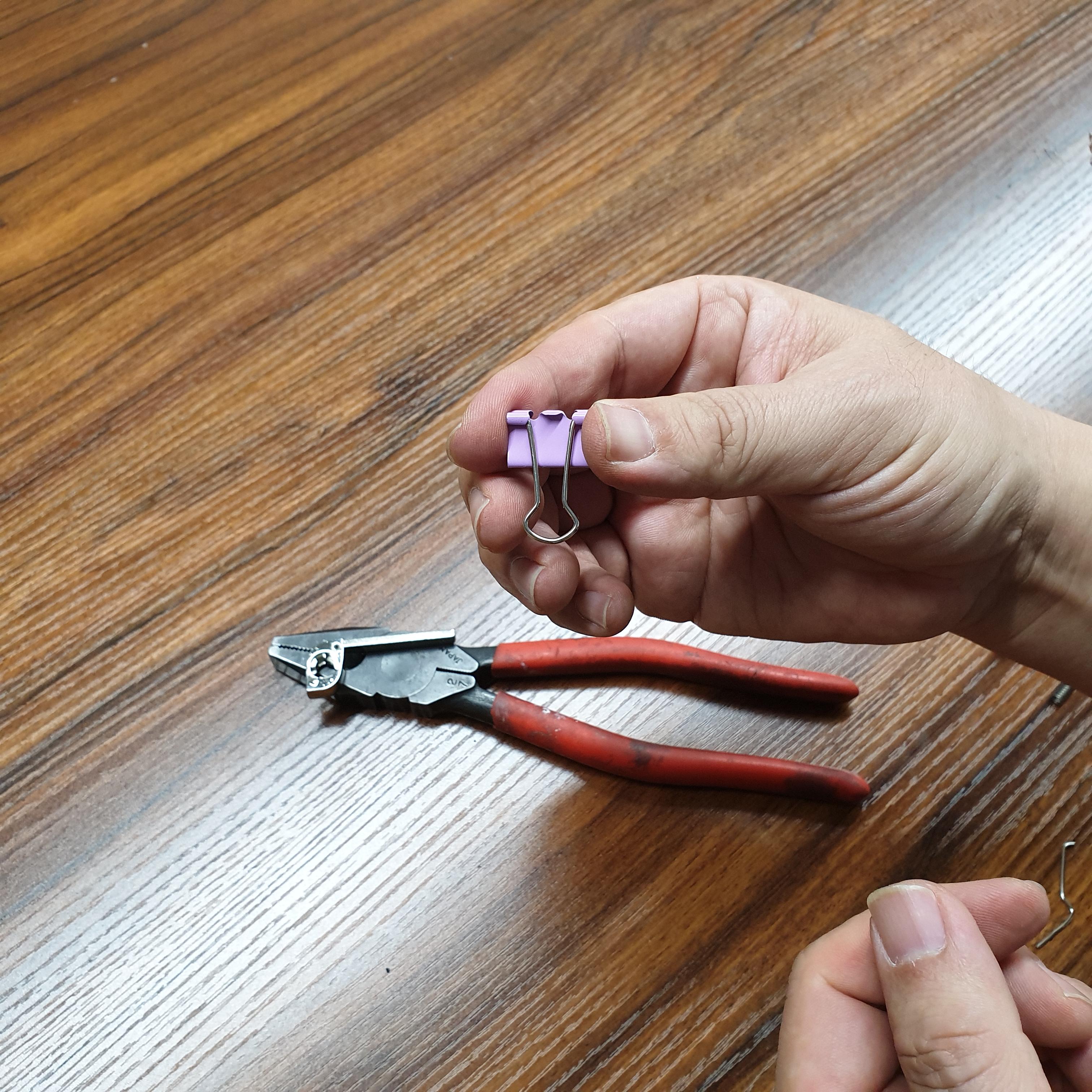 3.키를 분리하기 위해서는 '정(凿)=노미'가 필요한데 저렇게 작은 굵기가 없습니다. 송곳으로 해봤지만 송곳보다도 얇아야 합니다. 집에서 쉽게 찾을 수 있는 클립(더블클립)을 사용하면 쉽게 할 수 있습니다. 구부러져 있는 더블클립을 사용을 했는데 클립에서 손잡이 부분을 해체하여 사용하였습니다.