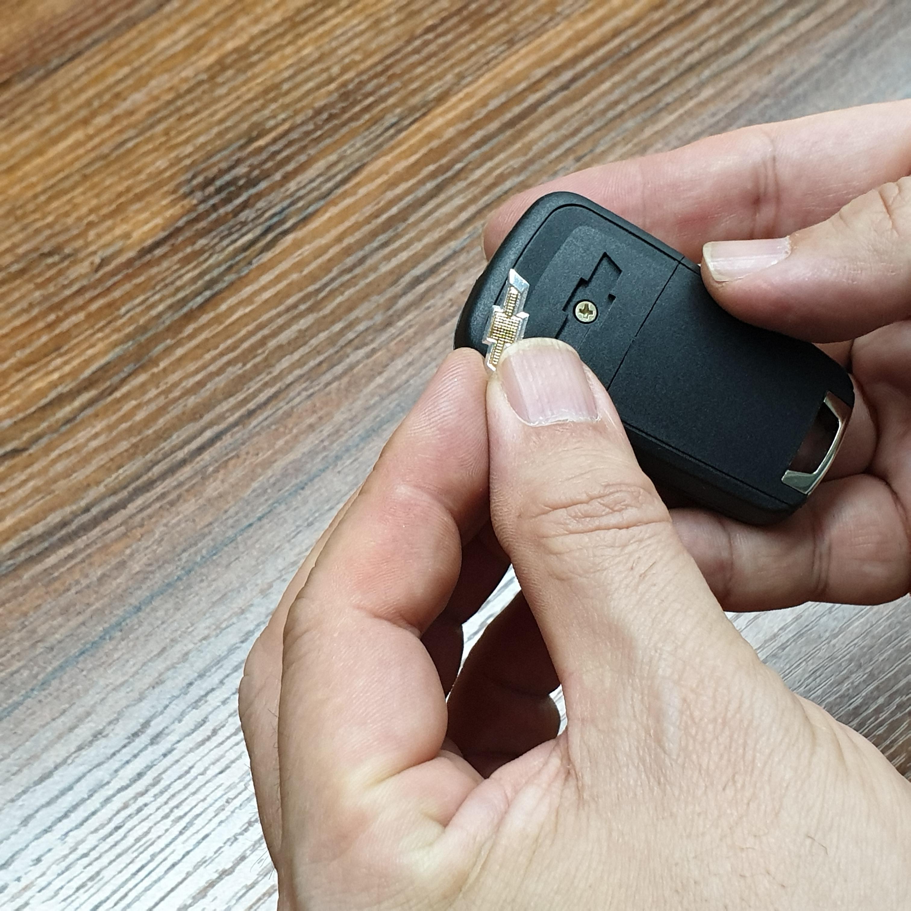 ① 배터리 분리 → ② 드라이버로 분리→ ③기판, 열쇠분리 → ④ 교체할 키에 기판, 열쇠조립→ ⑤ 배터리 삽입→ ⑥ 로고, 볼트체결→ ⑦ 작동 확인