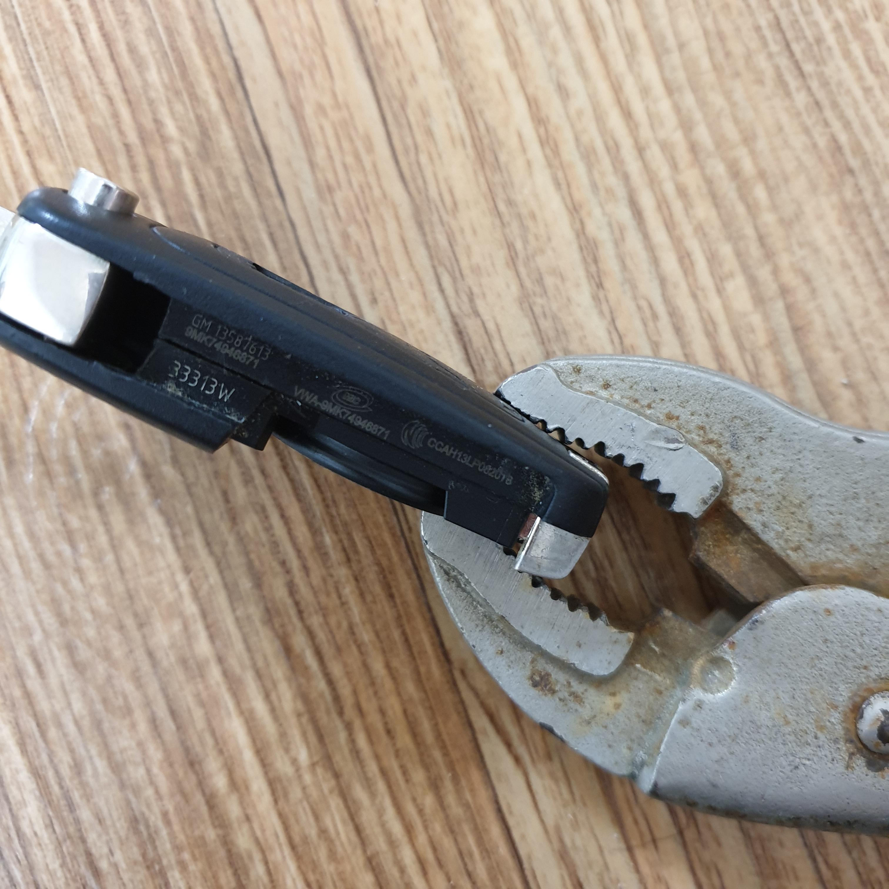 3. 스마트키가 바로 서 있지 않아 펜치를 이용하여 잡아두고 작업하였습니다.
