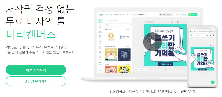 저작권 없는 무료 디자인 툴 (썸네일, 배너, 이벤트 페이지 제작이 가능하여 디자인 초보자도 쉽게 제작할 수 있는 사이트)